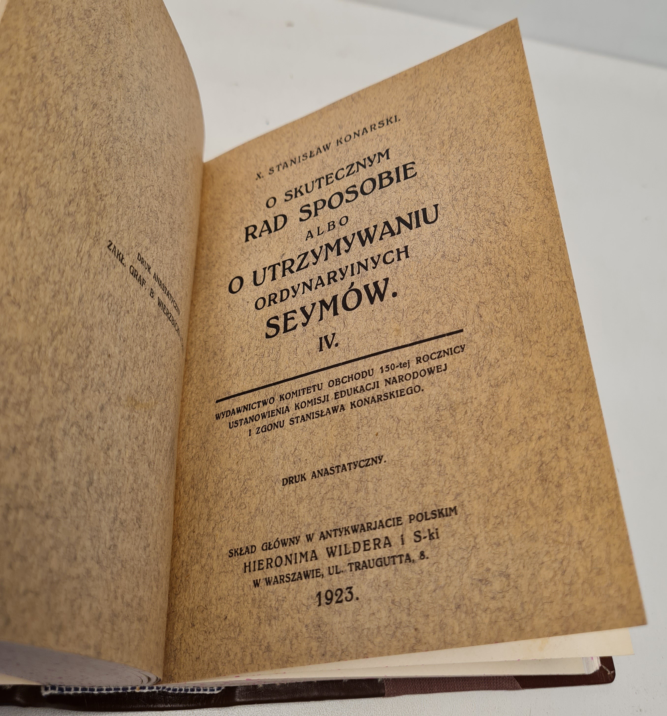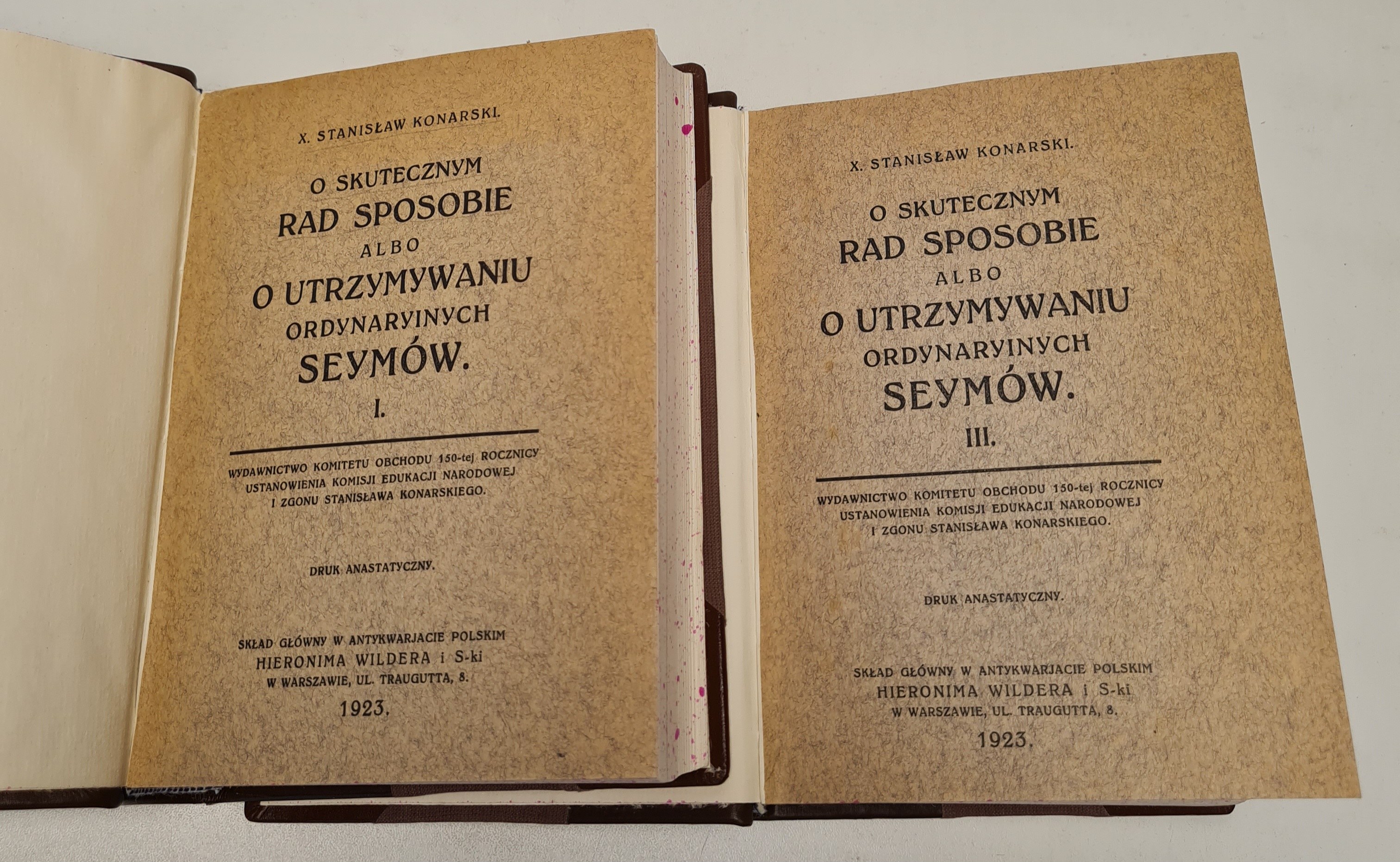 Tom I-IV w 2 wol. Druk anastatyczny. Warszawa 1923. Wydawnictwo Komitetu Obchodu 150-tej Rocznicy Ustanowienia K.E.N. i Zgonu S.Konarskiego. Wym.17,5x13,5cm; stron 200, 276, 364, 312. Współczesna oprawa - grzbiety zdobione, nakrapiane obcięcia kart; zachowane oryginalne okładki broszurowe. Na wyklejkach wklejony exlibris i pieczątki, nieliczne otarcia opraw.