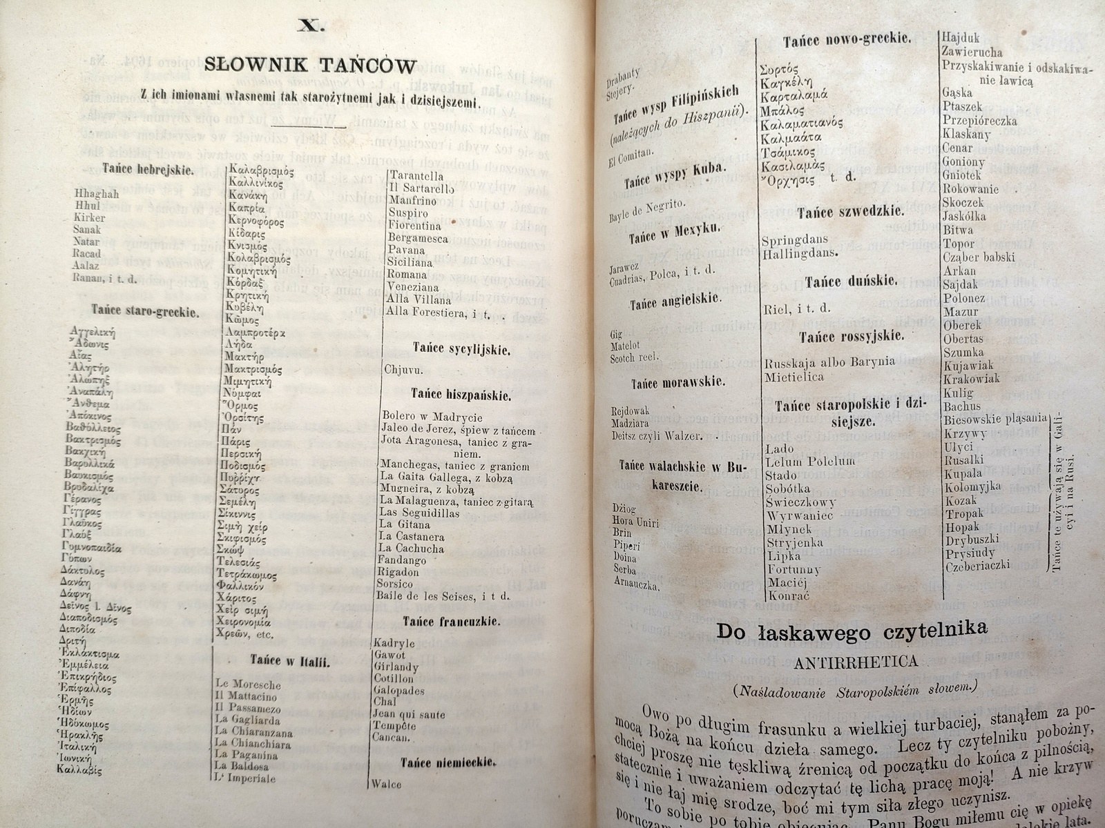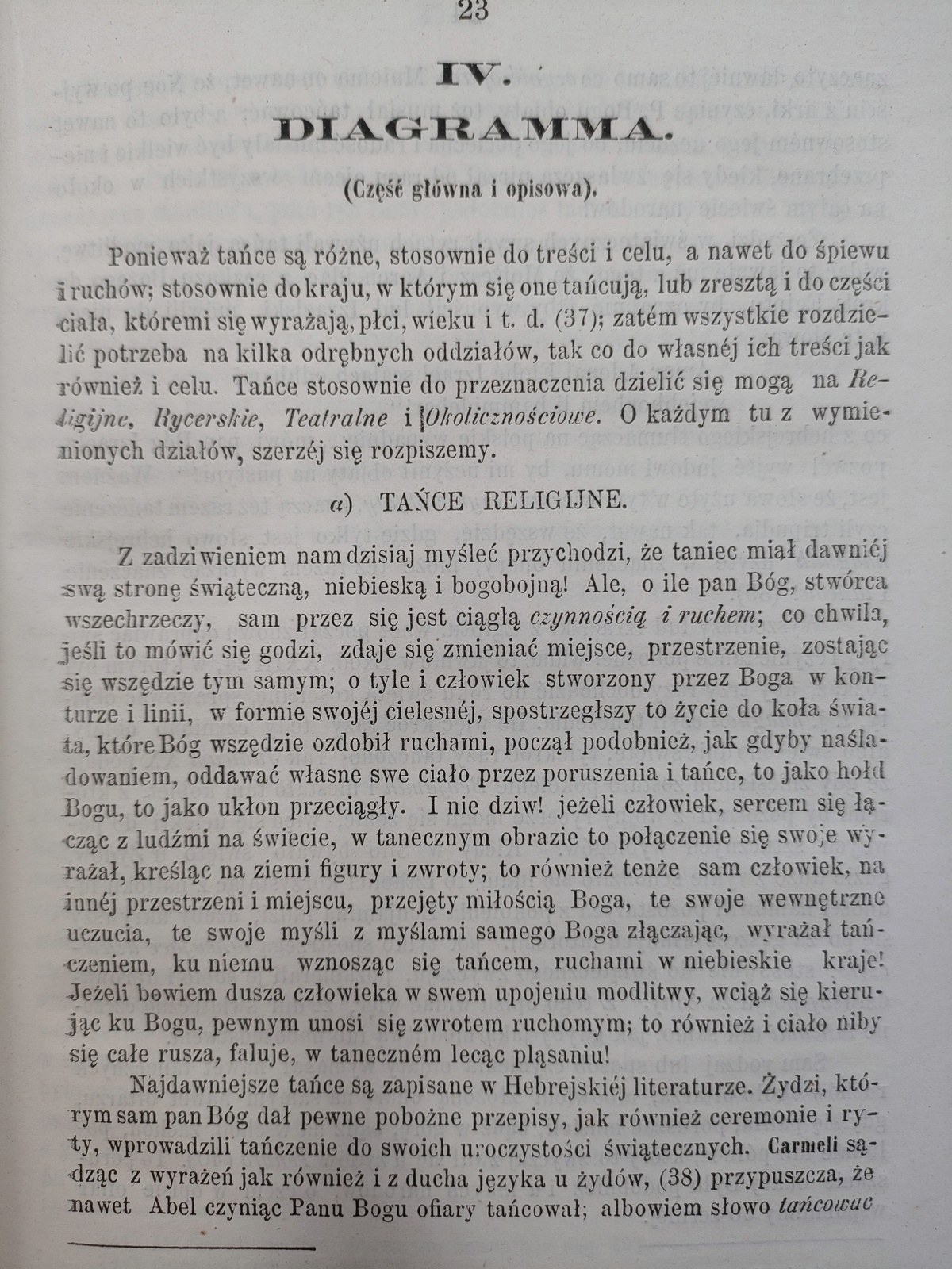 Zawiera m.in. rozdziały : Tańce religijne, rycerskie, obrzędowe, domowe, teatralne, popisowe, balety.