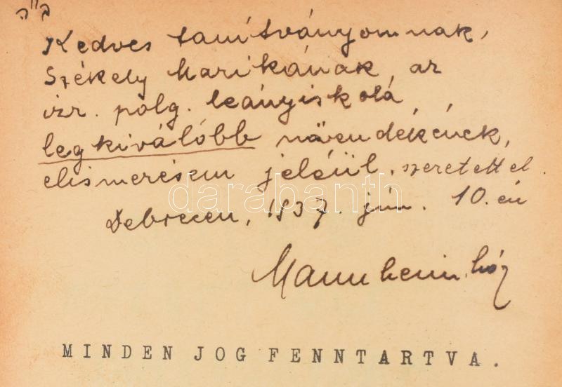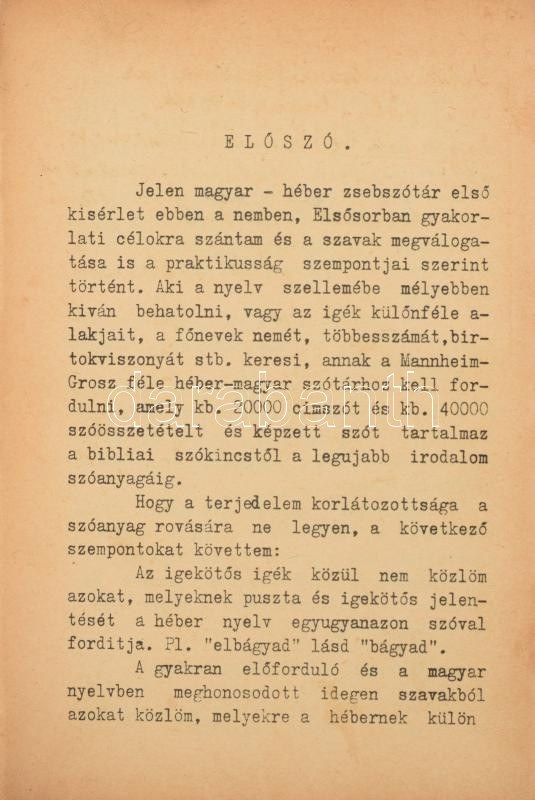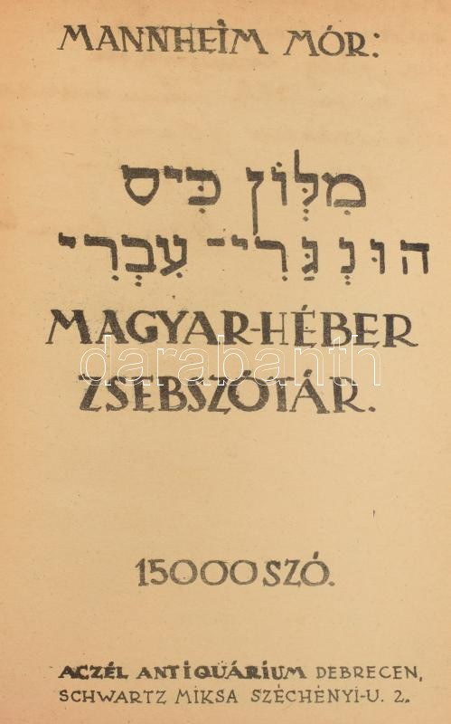Mannheim Mór: Magyar-héber zsebszótár. Dedikált, első kiadású példány! 15000 szó. Debrecen, [1937], Aczél Antiquarium...