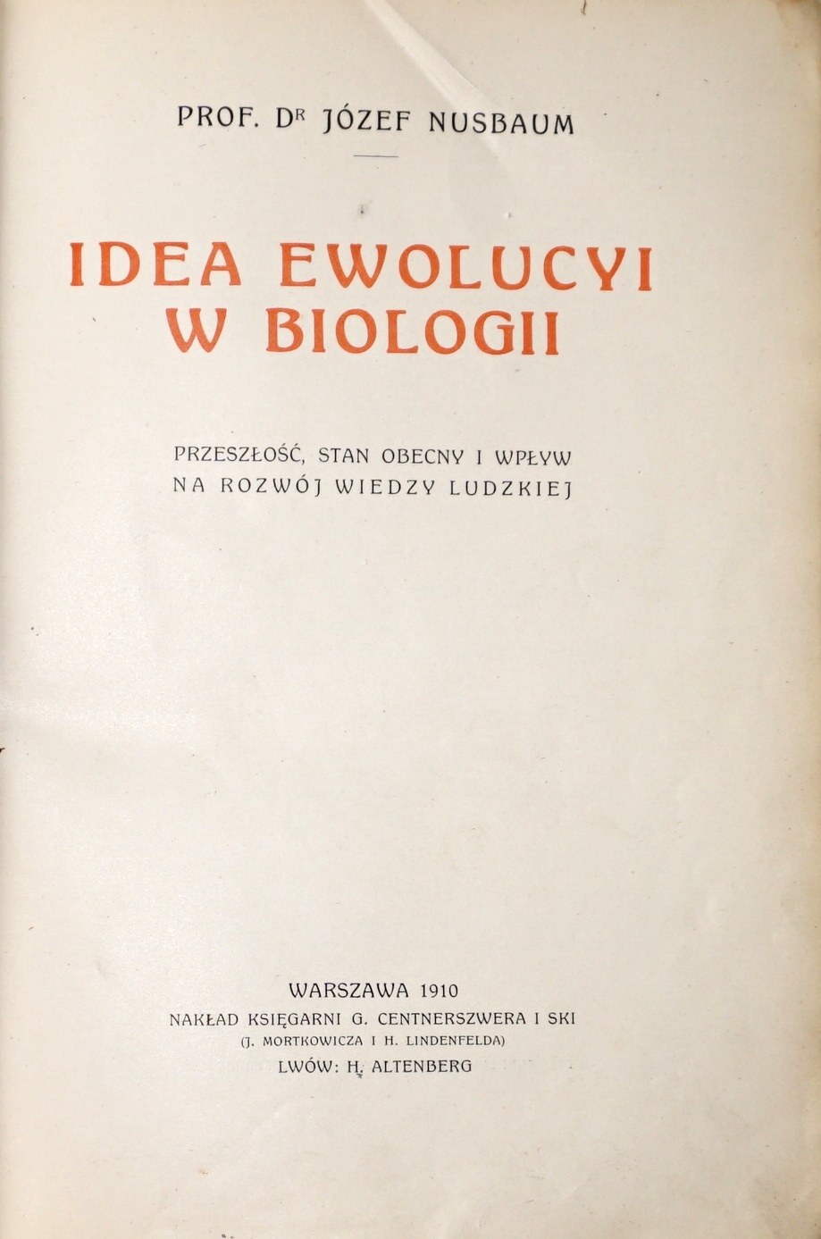 Idea ewolucyi w biologii : przeszłość, stan obecny i wpływ na rozwój wiedzy ludzkiej / Józef Nusbaum.