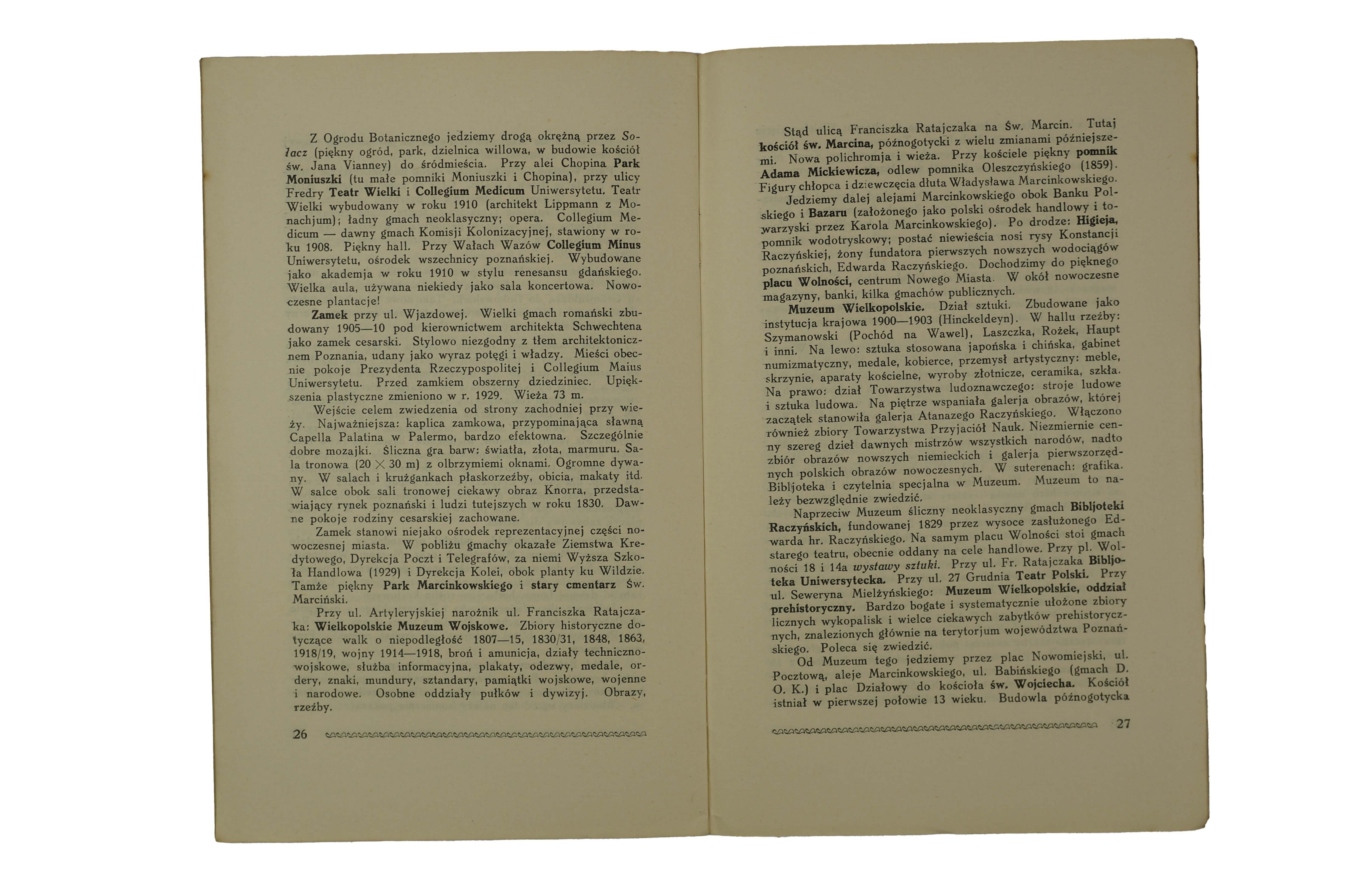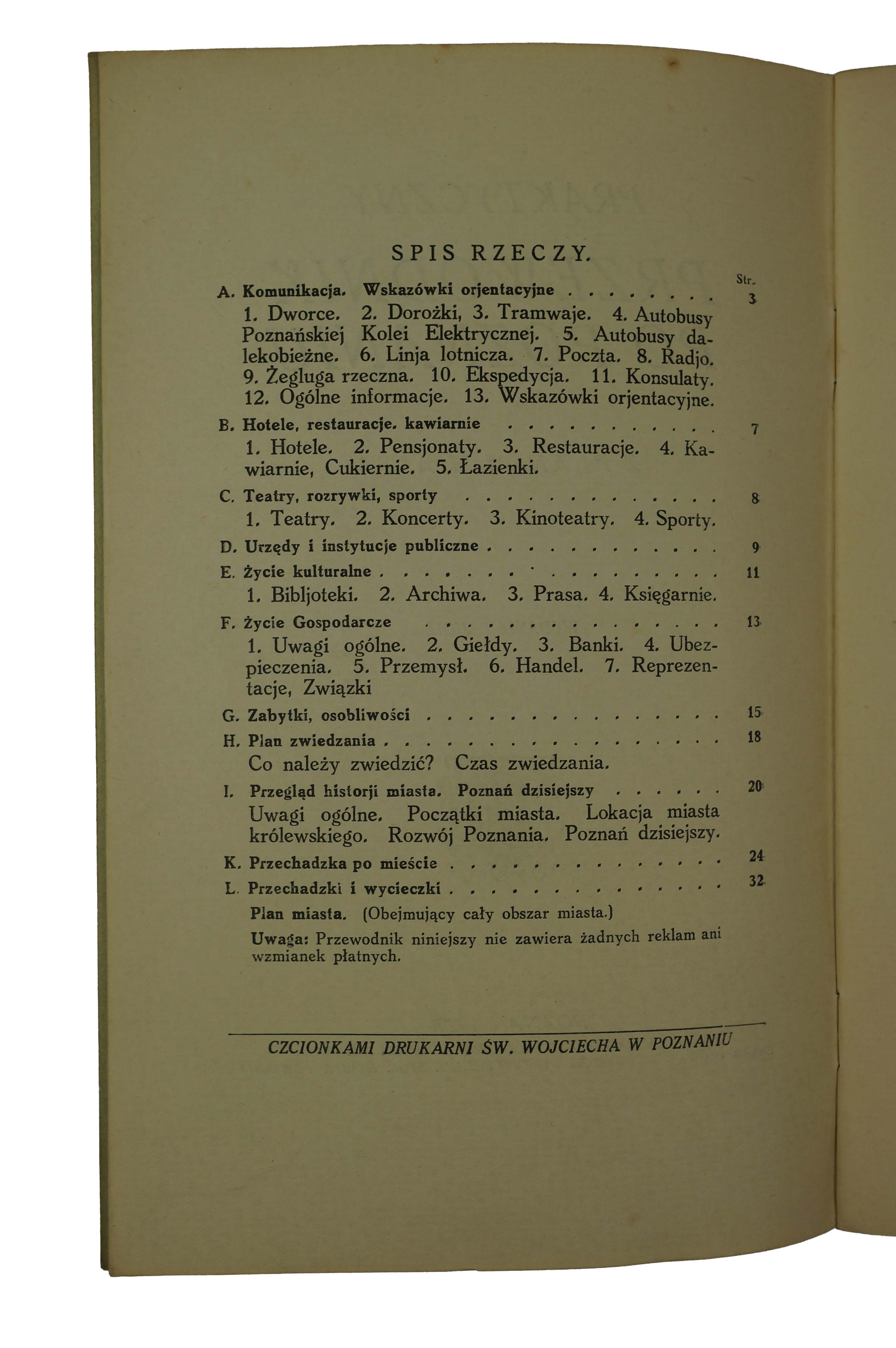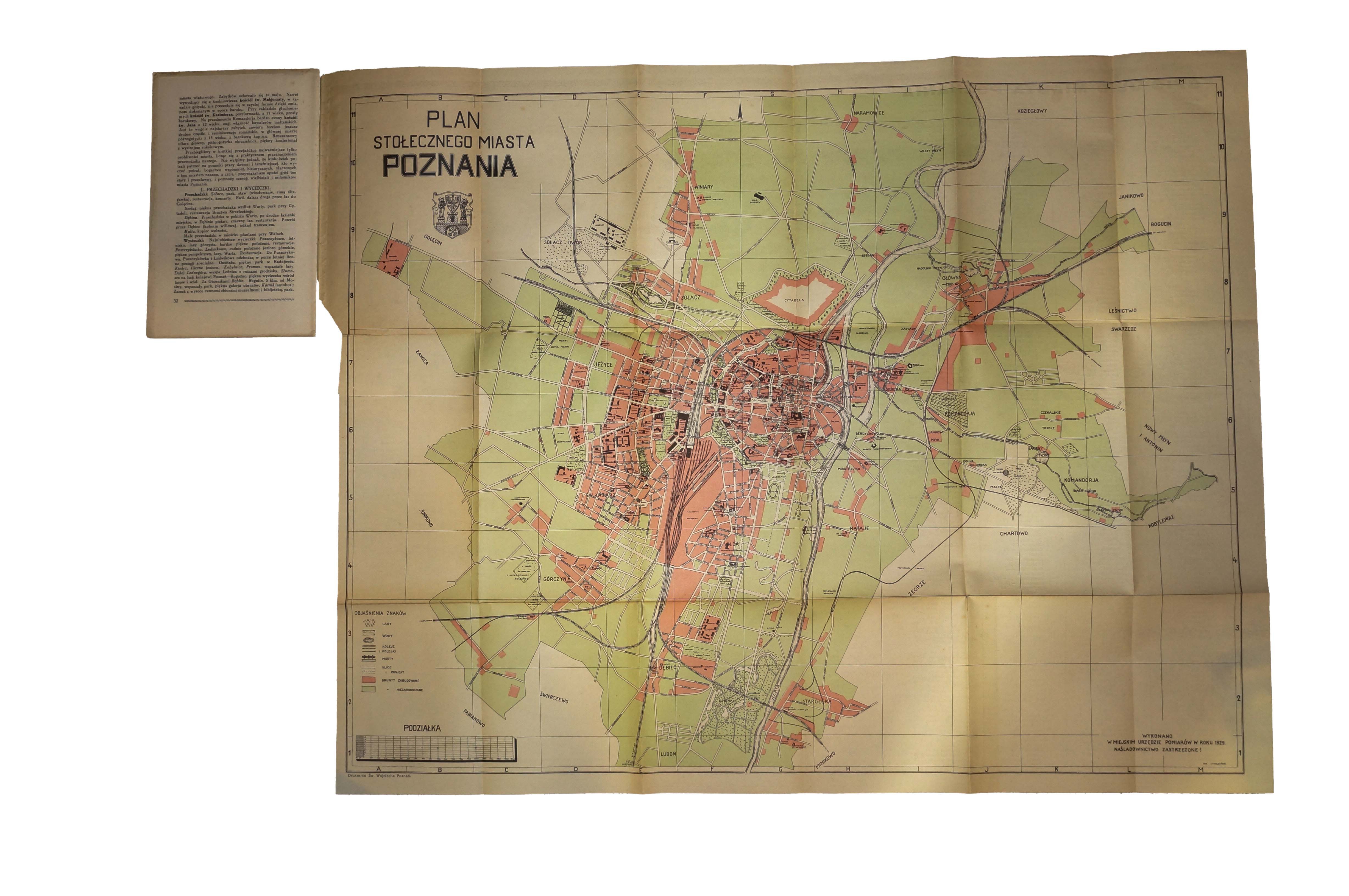 Praktyczny przewodnik po Poznaniu z planem miasta, Poznań 1929r., wydanie drugie, nakładem Magistratu Stol. Miasta Poznania, f. 14x22cm, s. 32, k. tablic 1 [rozkładany plan miasta ze spisem ulic, f. 73x58cm]