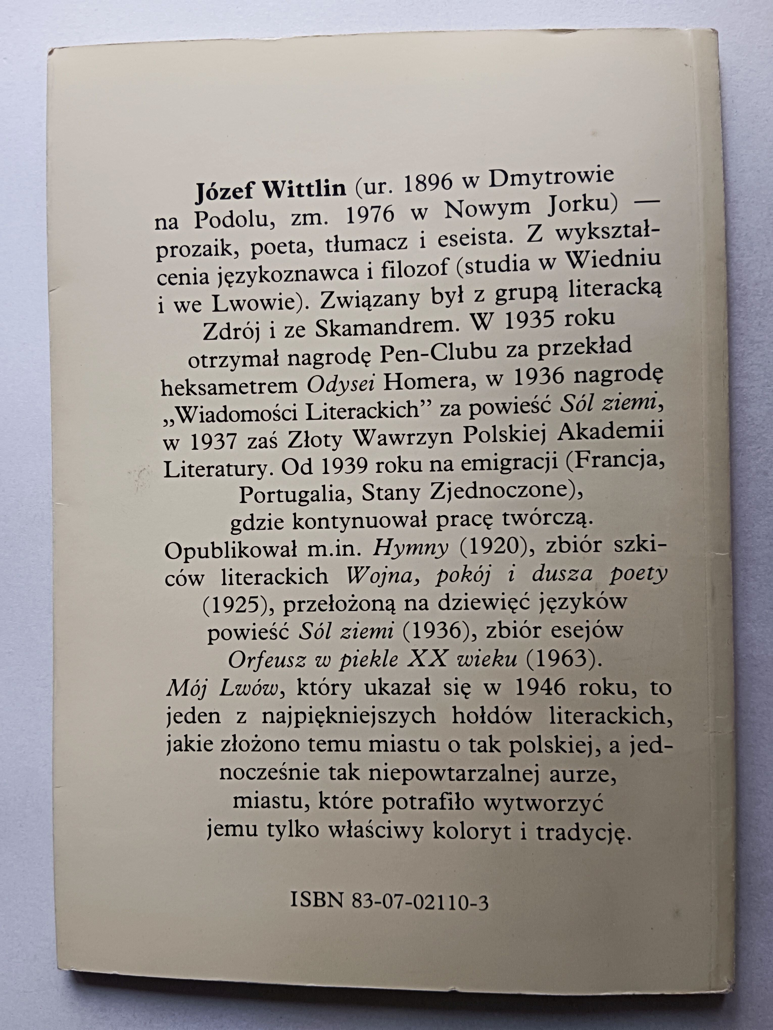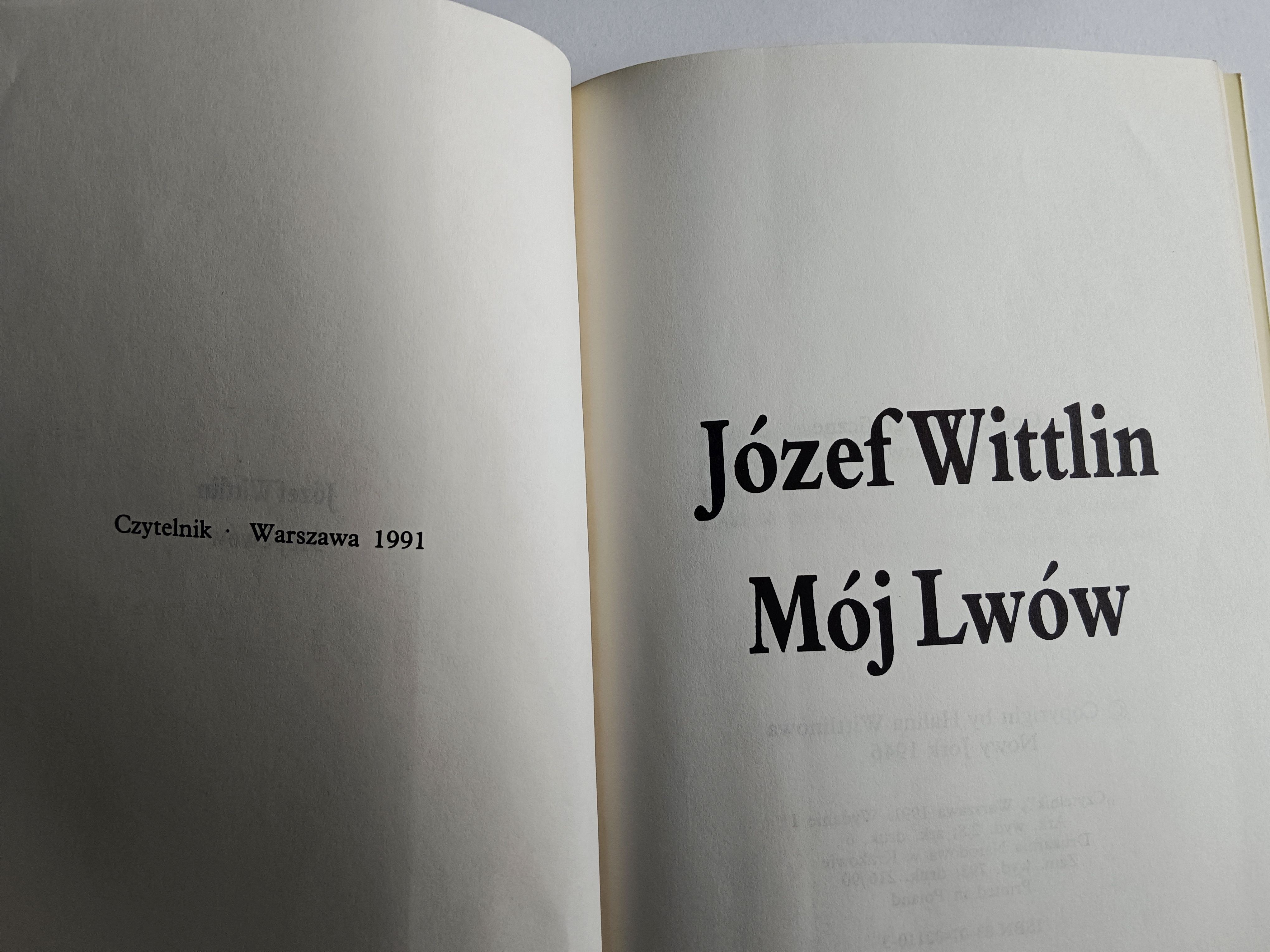 JÓZEF WITTLIN, MÓJ LWÓW, WARSZAWA 1991