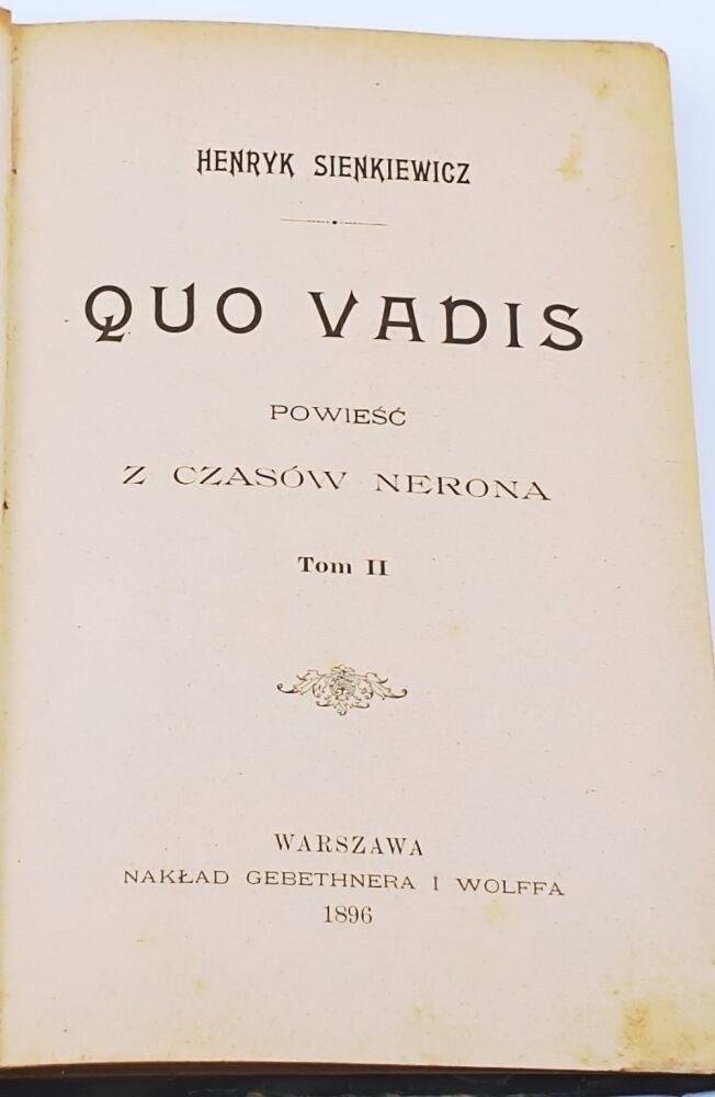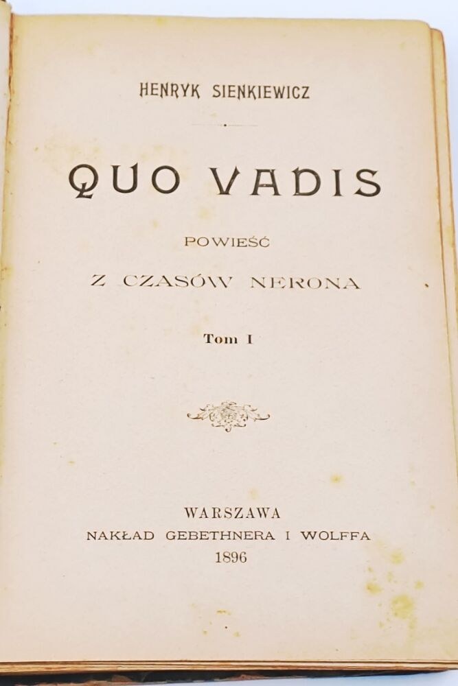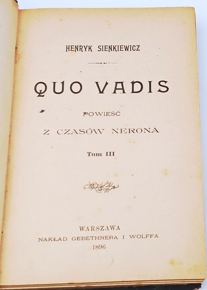 "Najpierw była publikowana w odcinkach w warszawskiej "Gazecie Polskiej" (lata 1895–96) i, z minimalnym opóźnieniem w stosunku do "Gazety", także w krakowskim dzienniku "Czas" i "Dzienniku Poznańskim". Wkrótce powieść została wydana w formie druku zwartego – jej premiera odbyła się w Krakowie, w 1896 roku. Powieść odniosła światowy sukces i została przetłumaczona na ponad pięćdziesiąt języków". źródło: wikipedia.org.