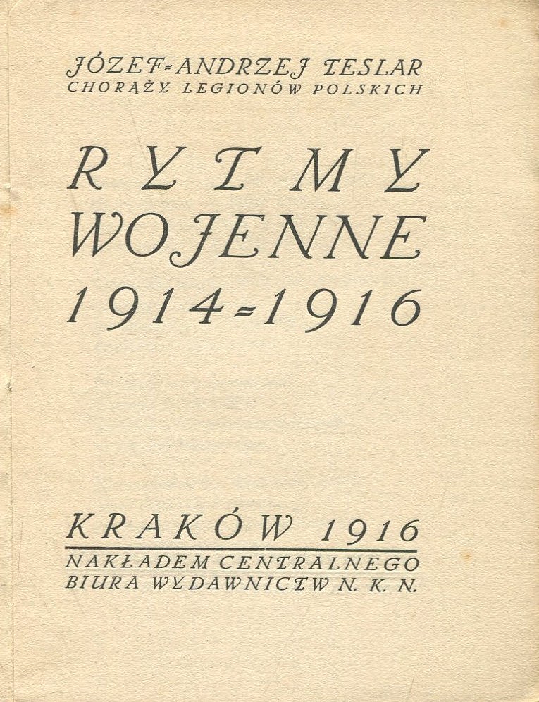 Tomik wierszy wojennych Józefa Andrzeja Teslara (1889-1961), majora piechoty Wojska Polskiego, działacza niepodległościowego, filozofa, poety, publicysty, tłumacza i krytyka sztuki. Okładkę zaprojektował Antoni Procajłowicz.