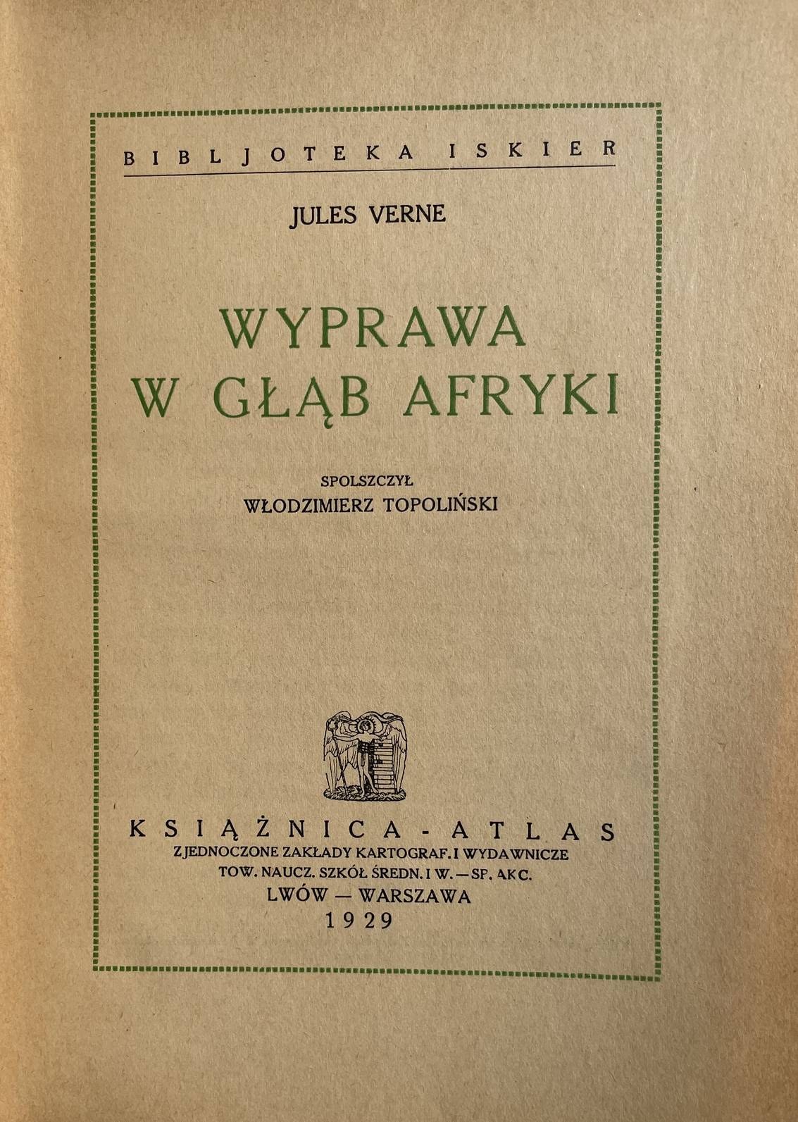 Verne Juliusz, Wyprawa w głąb Afryki. Lwów 1929, Książnica-Atlas. 20 cm, str. [2], 231, [1], ilustr. Okł. wyd., stan niemal b. dobry.