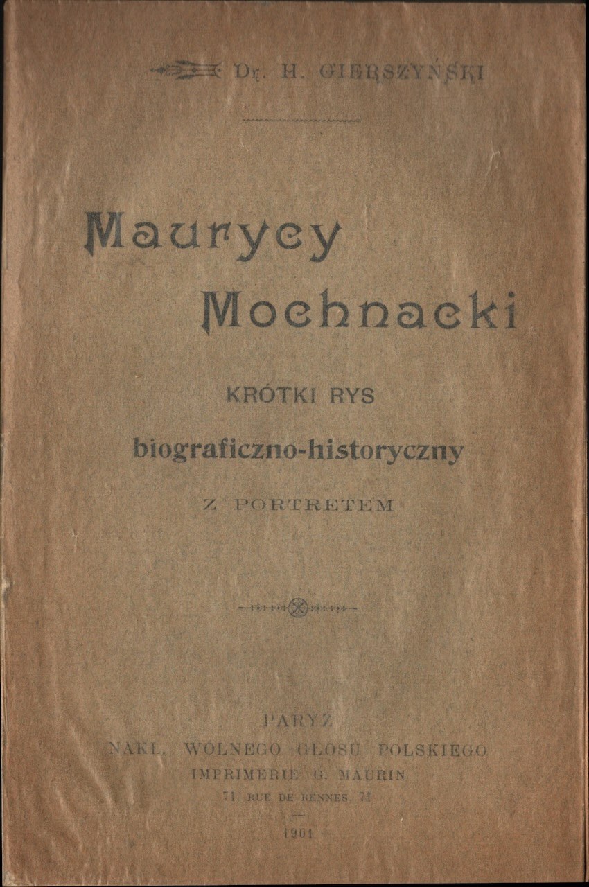 GIERSZYŃSKI Henryk - Maurycy Mochnacki : Krótki rys biograficzno-historyczny z portretem. Paryż 1901. Nakł. Wolnego Głosu Polskiego.