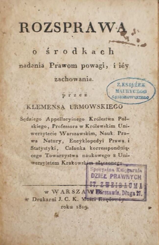 Pieczęć księgarska: Specyalna Księgarnia Dzieł Prawnych St. Zweibauma,w Warszawie.