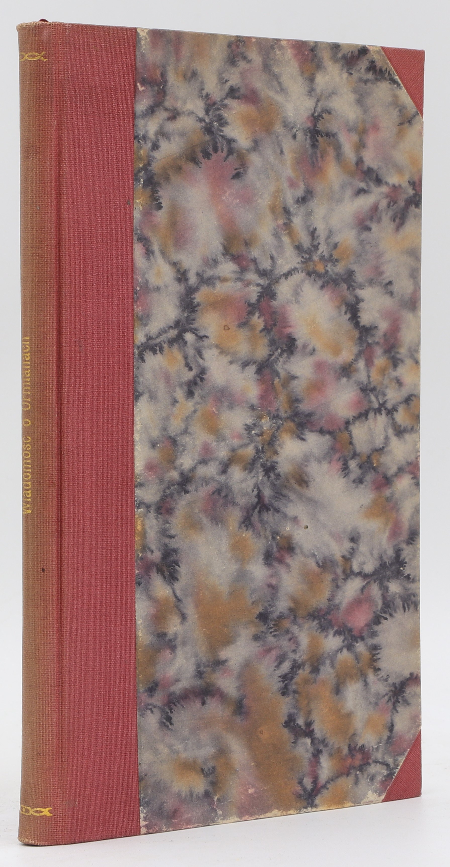 [ZACHARIASIEWICZ Franciszek]. WIADOMOŚĆ o Ormianach w Polszcze, Wytłocznia Józefa Schnaydera, Lwów 1842, wydanie Zakładu Naukowego im. Ossolińskich; 85 str., st. bdb., oprawa twarda, półpłócienna, na grzbiecie złocony tyt., ozdobne wyklejki, format 8o. Bardzo rzadkie.