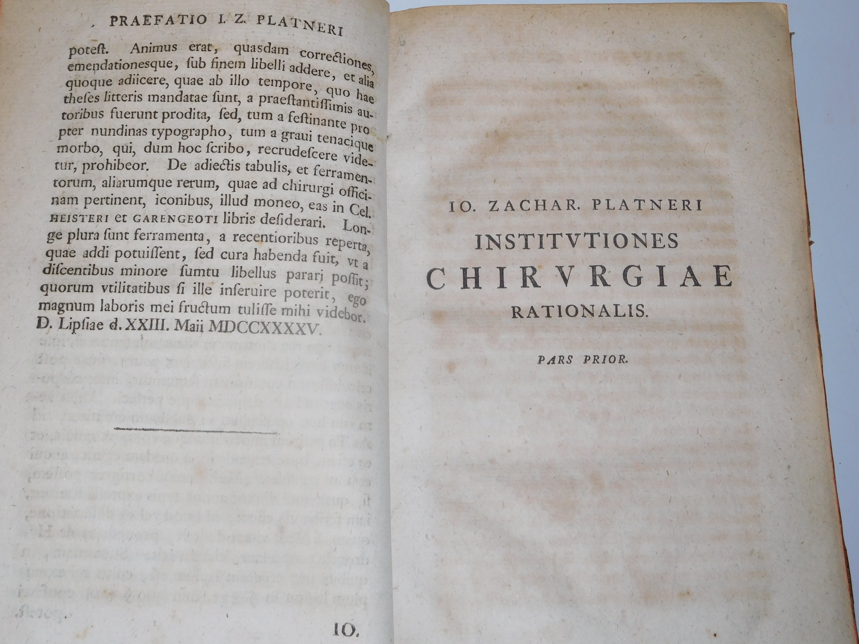 34. PLATNER JOHANN ZACHARIAS, Institutiones chirurgiae rationalis tum medicae tum manualis in usus discentium. (…).