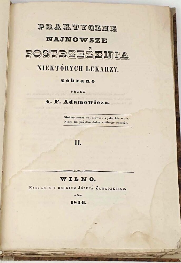 Wilno 1846, Nakładem i drukiem Józefa Zawadzkiego, str. 112, format 15,5x23,5cm