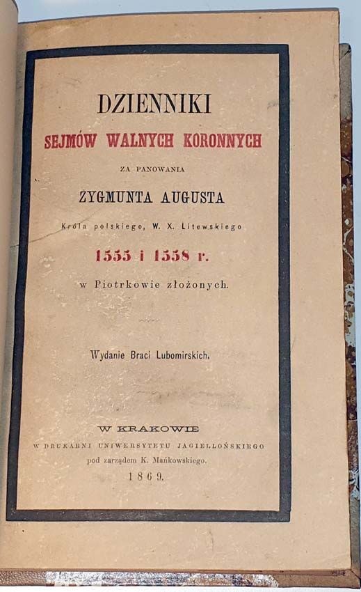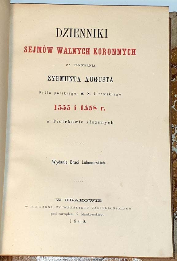 DZIENNIKI SEJMÓW WALNYCH KORONNYCH ZA PANOWANIA ZYGMUNTA AUGUSTA