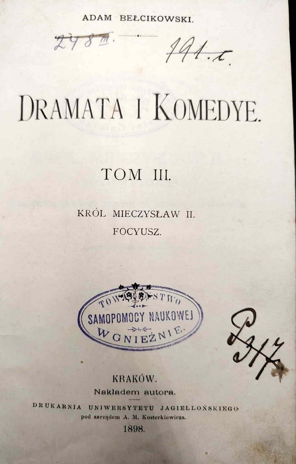 Bełcikowski Adam - Dramata i Komedye - Tom III, Kraków 1898