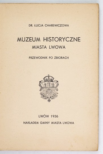 CHAREWICZOWA Łucja - Muzeum Historyczne miasta Lwowa. Przewodnik po zbiorach. Lwów 1936. Nakł. Gminy. 8, s. 85, [2], tabl. 11. brosz.