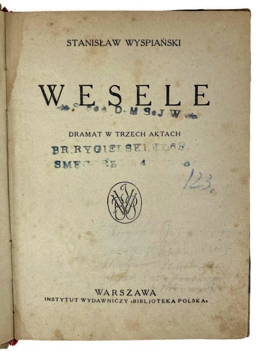 Wesele - Stanisław Wyspiański, książka wydana w Warszawie przez Instytut Wydawniczy "Bibljoteka Polska", nieznana data wydania