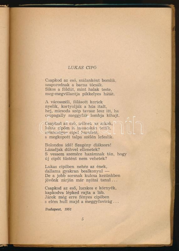 Csoóri Sándor: Felröppen a madár. DEDIKÁLT! 1954, Szépirodalmi. Kiadói papírkötés, lapokon ázásnyomok...