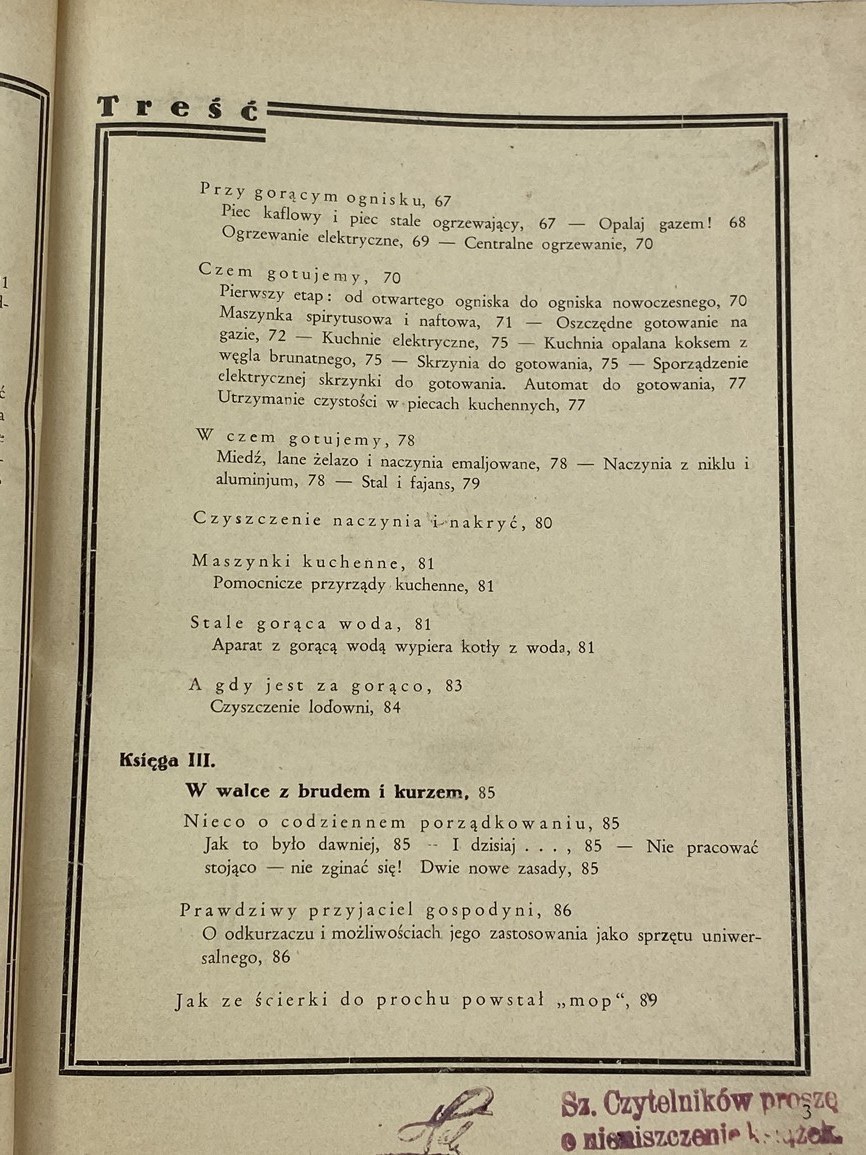 Wszechstronny podręcznik gospodarstwa domowego, obejmujący tematy tj. urządzanie, dekoracja mieszkania, porządki, odżywianie i kulinaria, hodowla zwierząt, pielęgnacja roślin, ogrodnictwo, kosmetologia i zdrowie, życie płciowe, porady małżeńskie, krawiectwo i robótki ręczne.