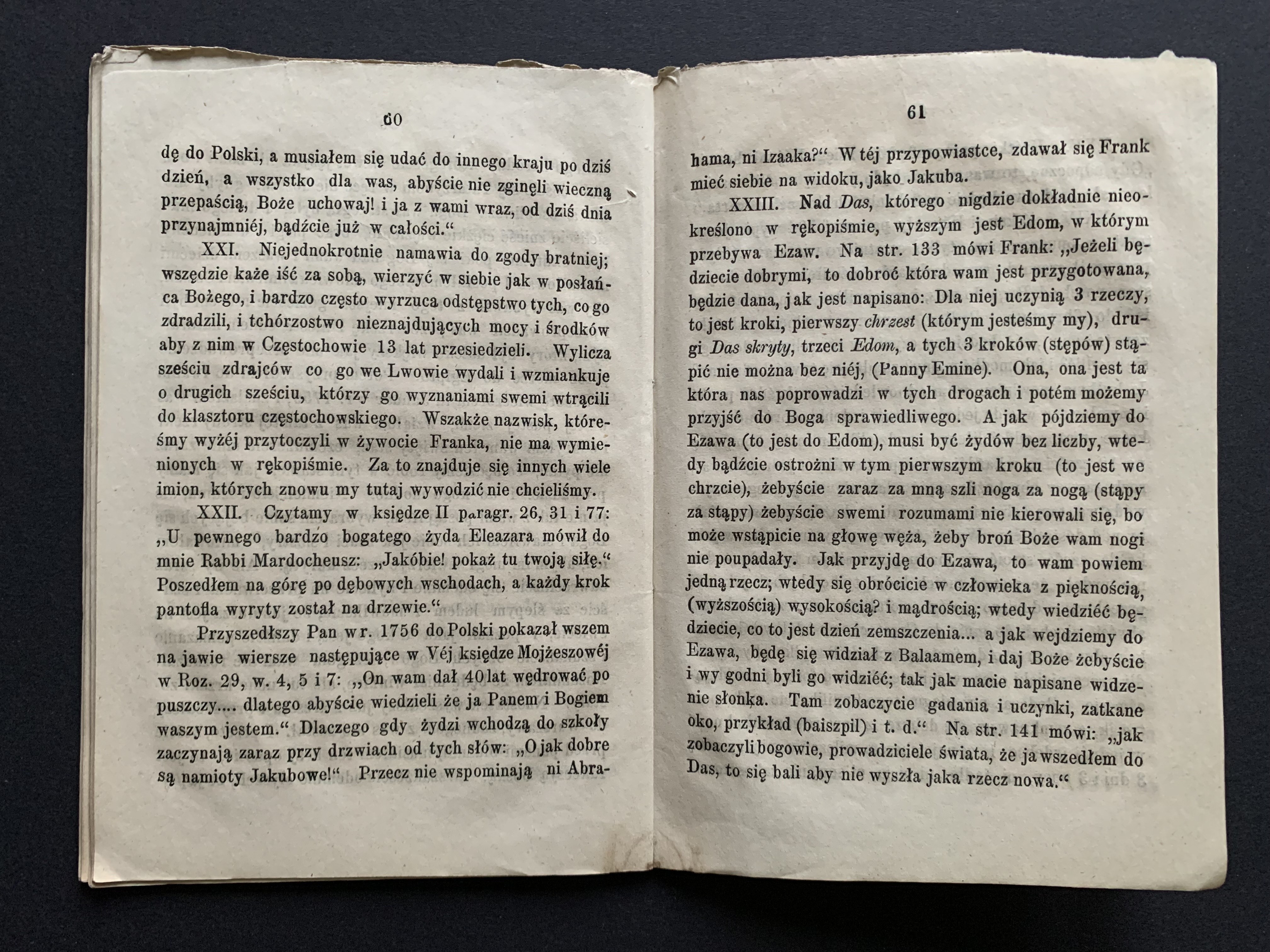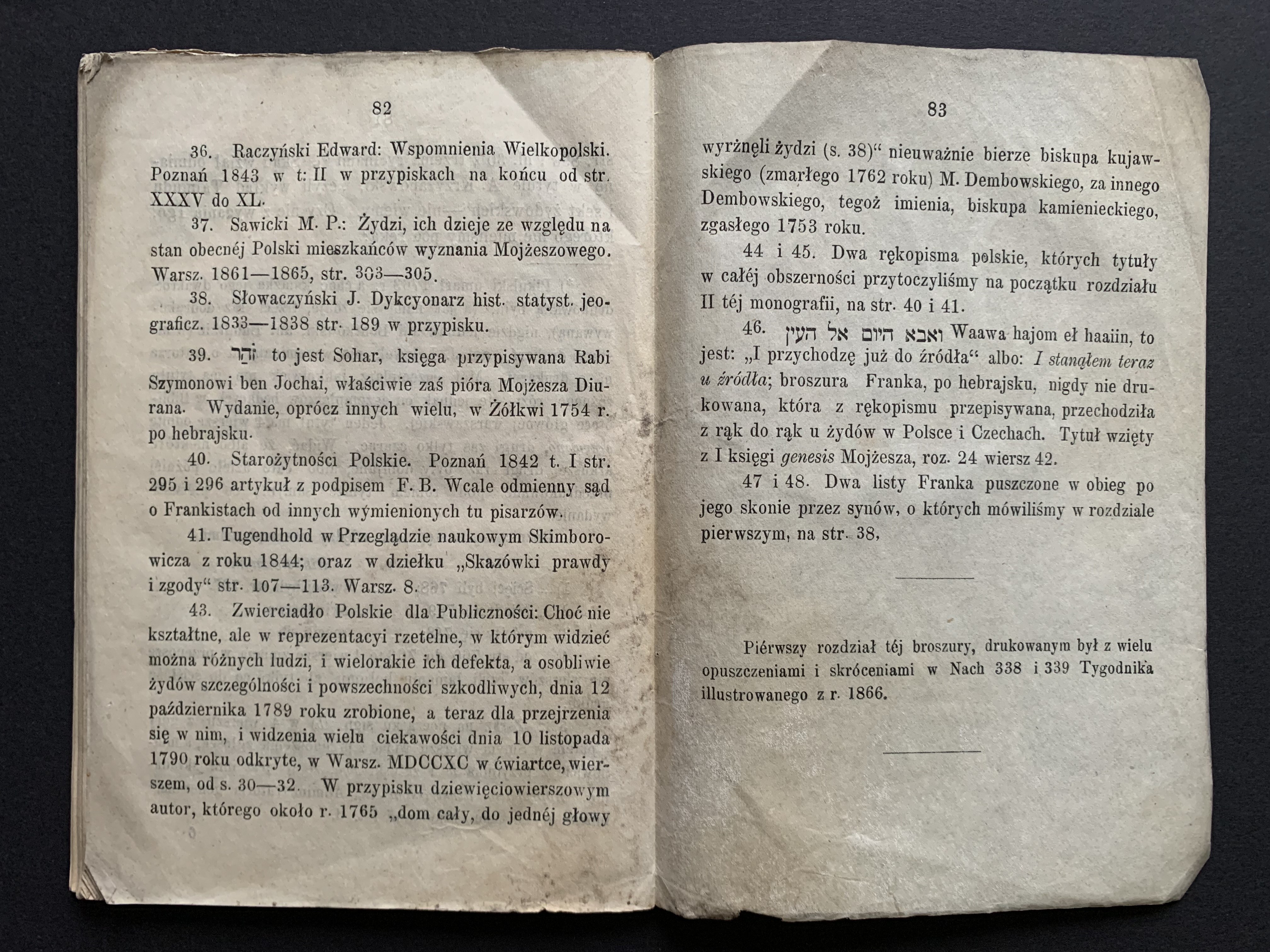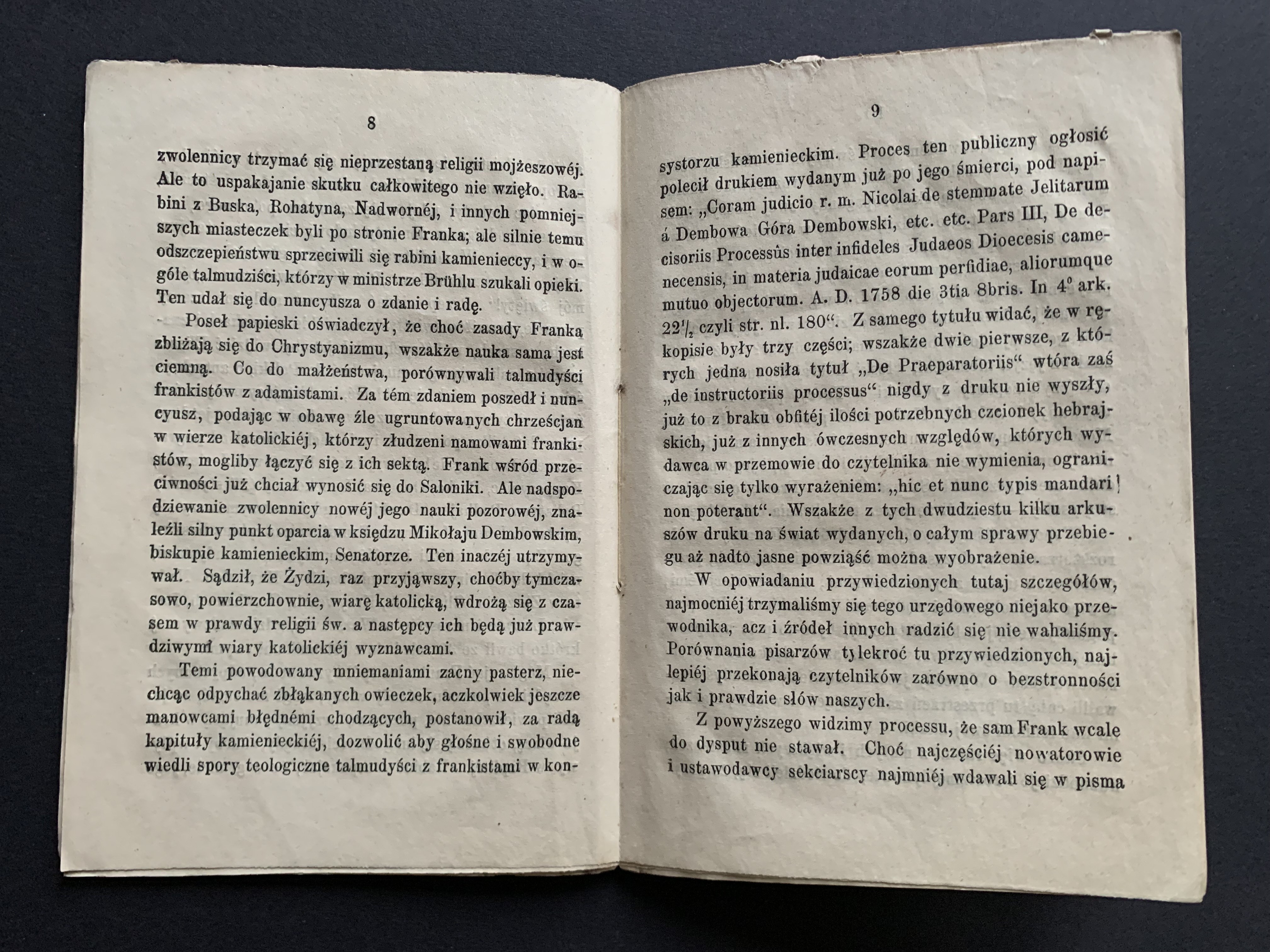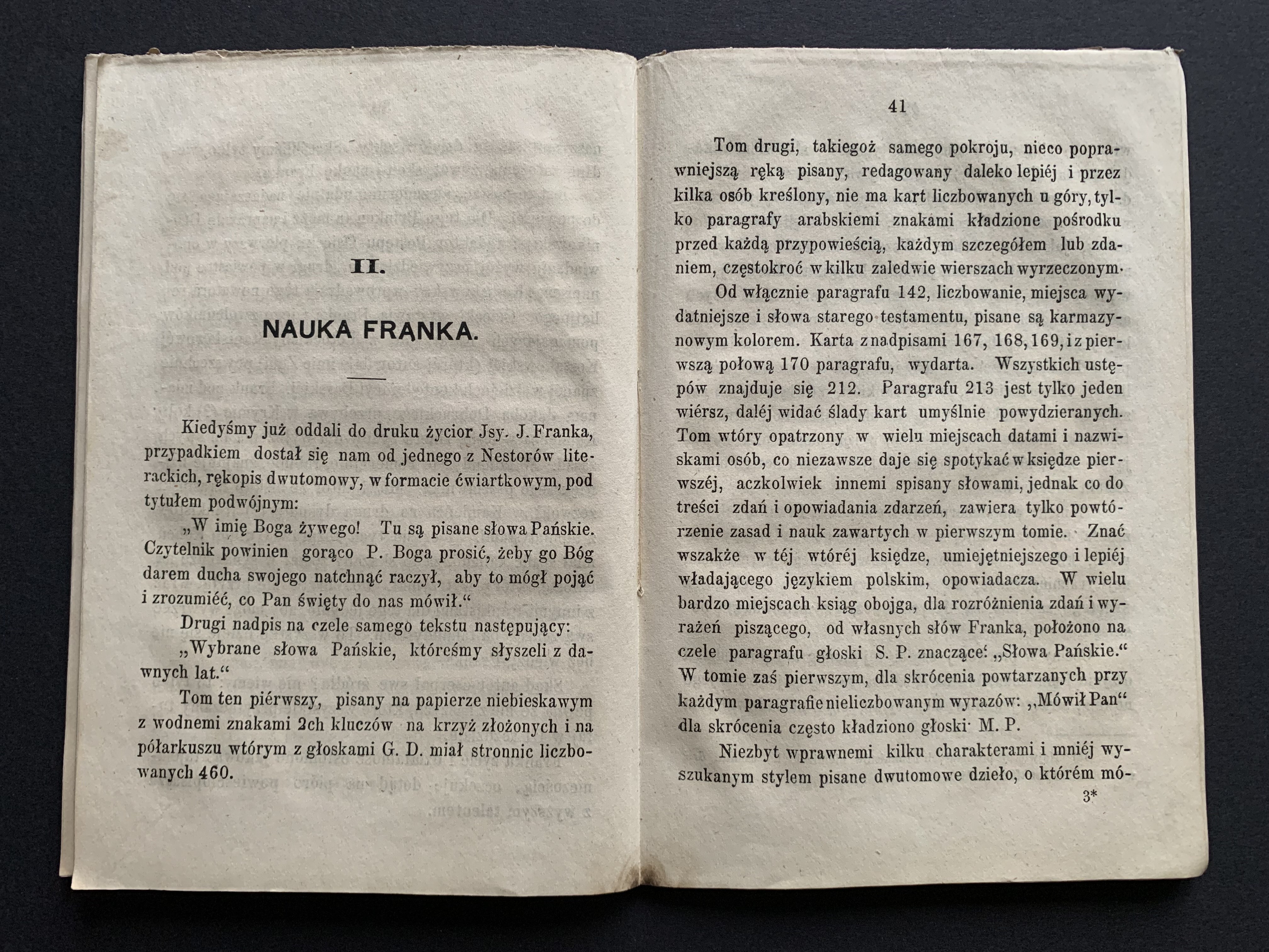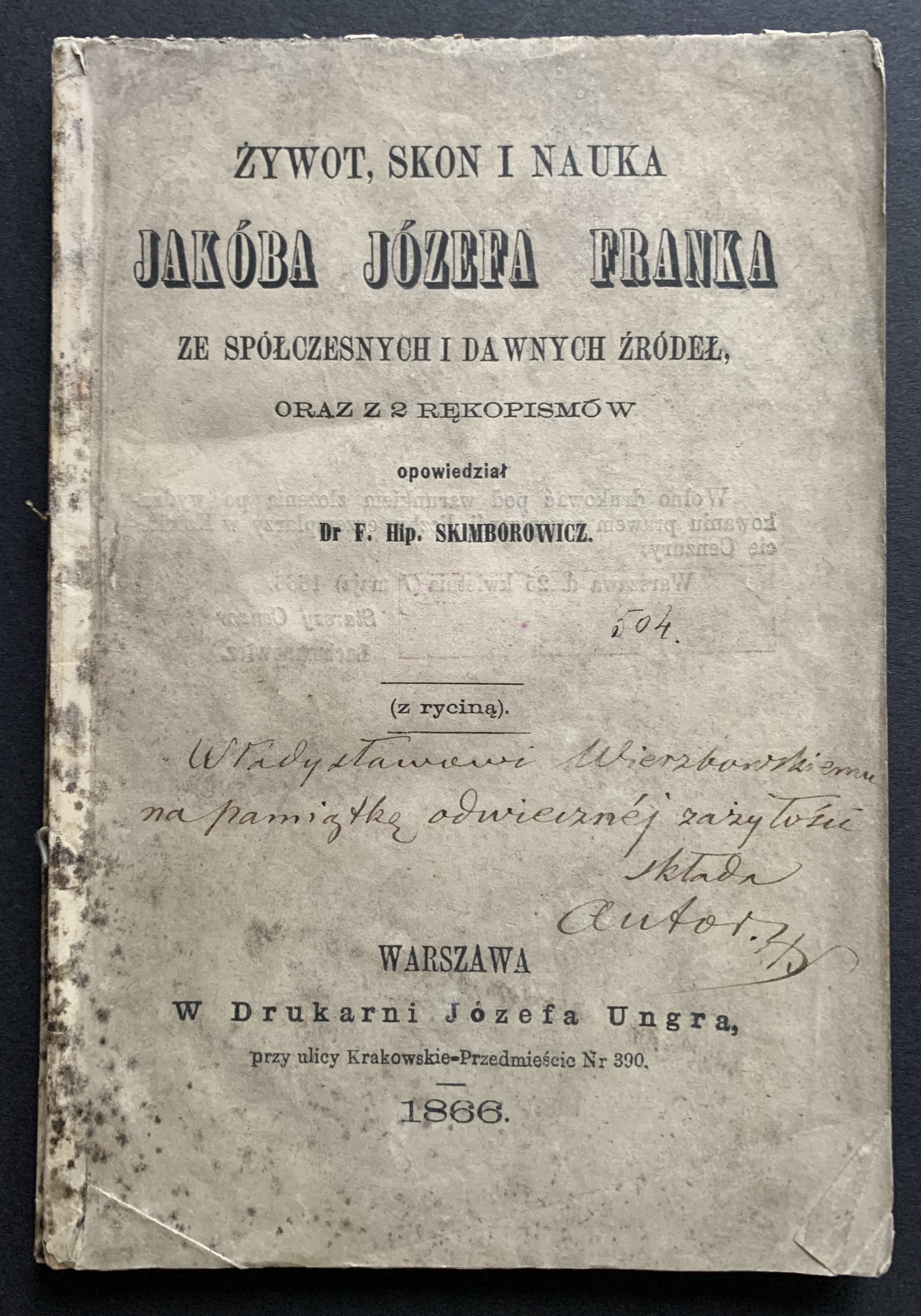 Żywot, skon i nauka Jakóba Józefa Franka: ze współczesnych i dawnych źródeł oraz z 2 rękopisów opowiedział Dr F. Hip. SKIMBOROWICZ. Warszawa. W Drukarni Józefa Ungra, przy ulicy Krakowskie-Przedmieście Nr 390. 1866.