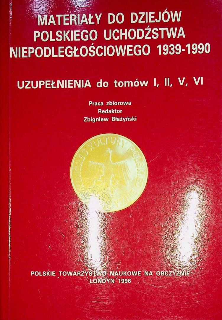 MATERIAŁY DO DZIEJÓW POLSKIEGO UCHODŹSTWA NIEPODLEGŁOŚCIOWEGO 1939-1990 Uzupełnienia do tomów: I, II, V, VI