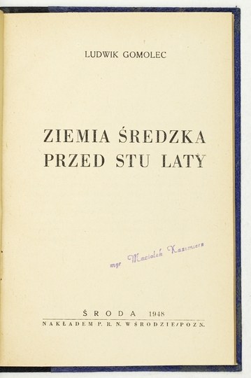 GOMOLEC Ludwik - Ziemia Średzka przed stu laty. Środa 1948. P.R.N. w Środzie. 8, s. 94, [2]. opr. wsp. ppł.