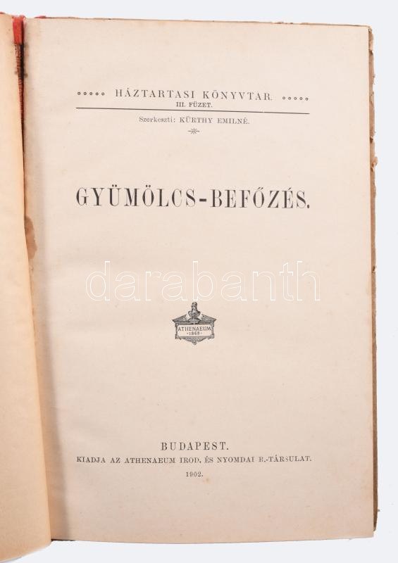 Gyümölcs-befőzés. Szerk.: Kürthy Emilné. Bp., 1902., Athenaeum, 60 l. 210 mm. /Háztartási könyvtár III....