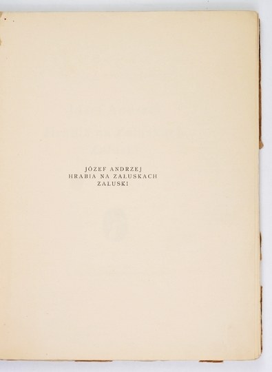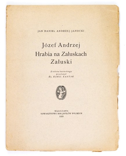 JANOCKI Jan Daniel Andrzej - Józef Andrzej Hrabia na Załuskach Załuski. Z tekstu łacińskiego przeł. Kamil Kantak. Warszawa 1928. Tow. Bibljofilów Pol. 4, s. 112, [1]. brosz.