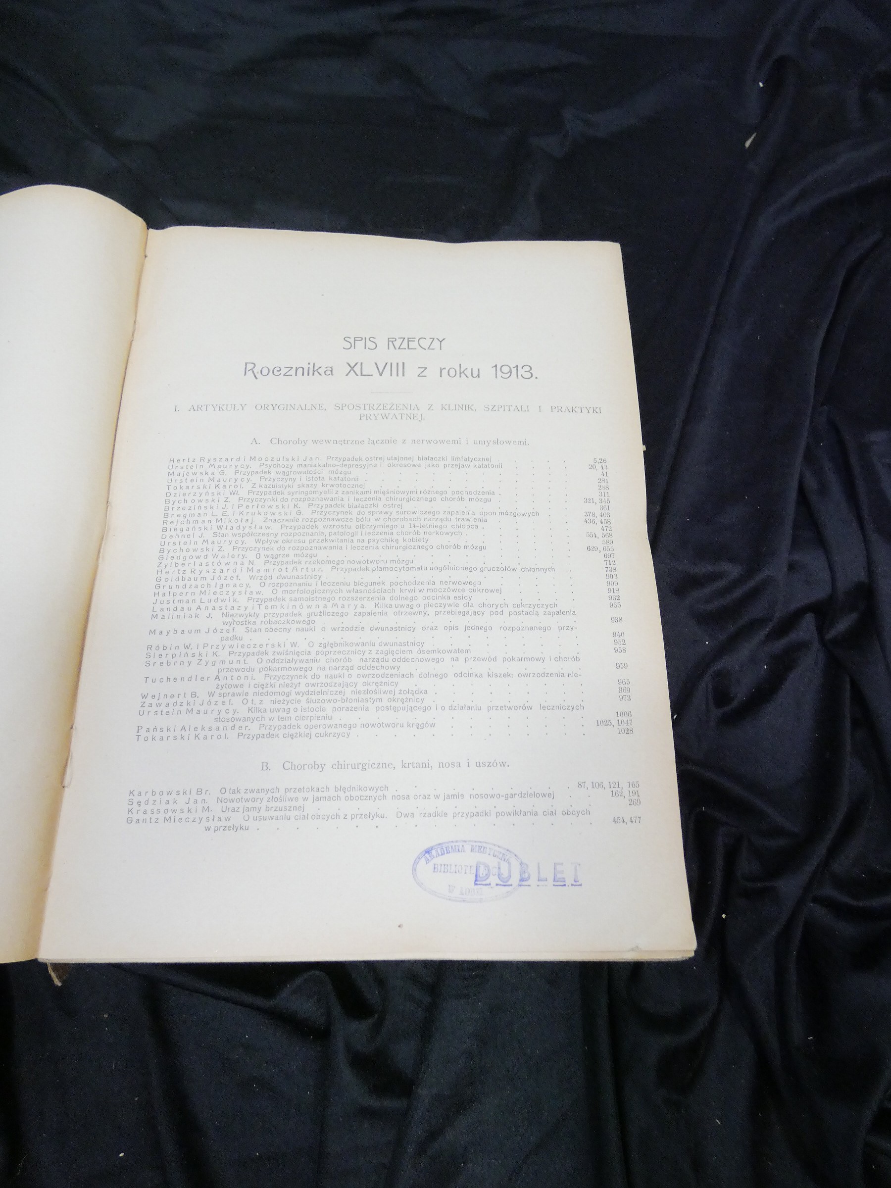 ZAWIERA STEMPEL AKADEMII MEDYCZNEJ W ŁODZI ORAZ SZPITALA KAROLA I MARII W WARSZAWIE ORAZ