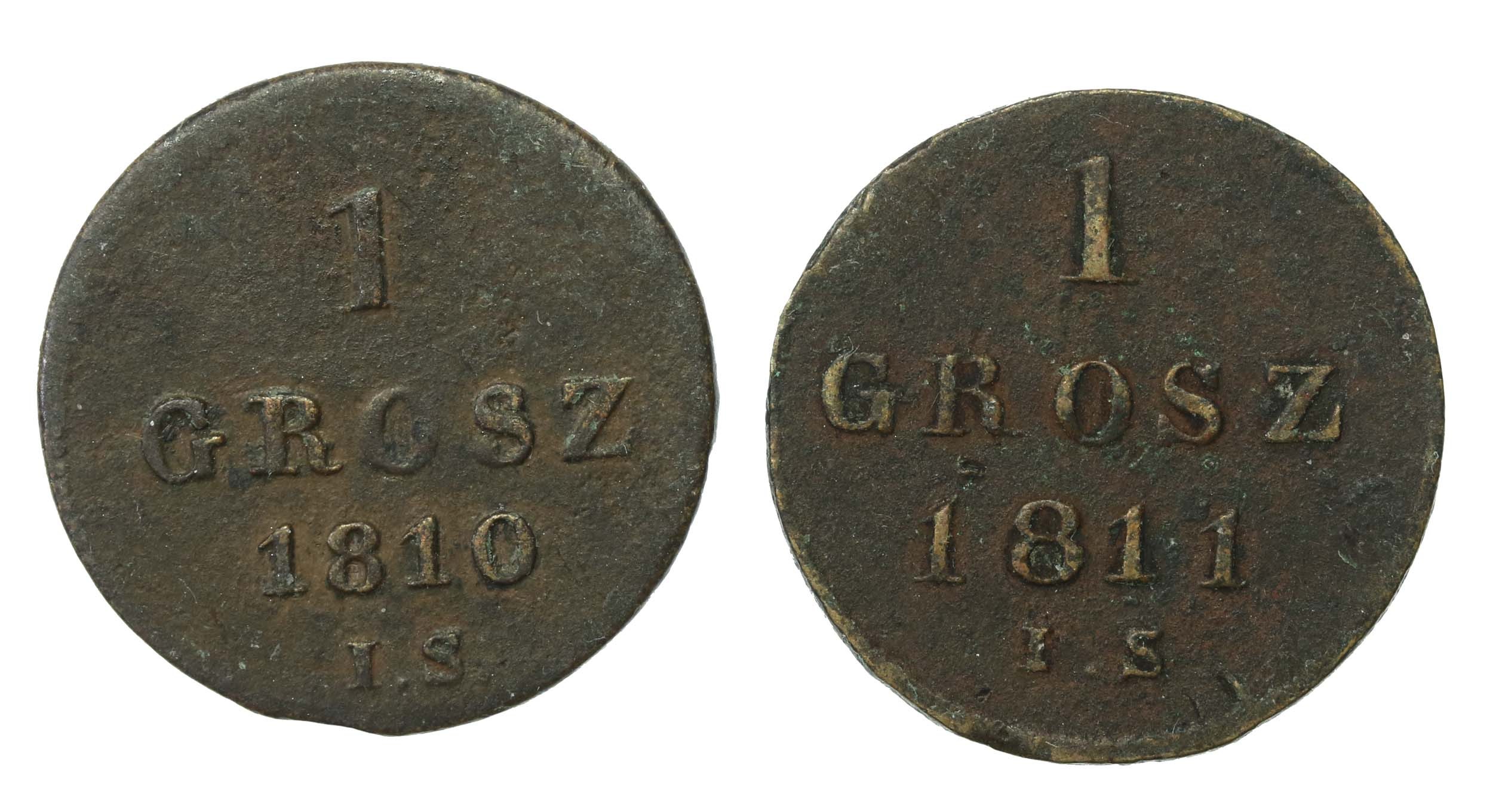 Księstwo Warszawskie, Fryderyk August, zestaw groszy. Razem 2 sztuki. Monety z 1810, 1811 r.