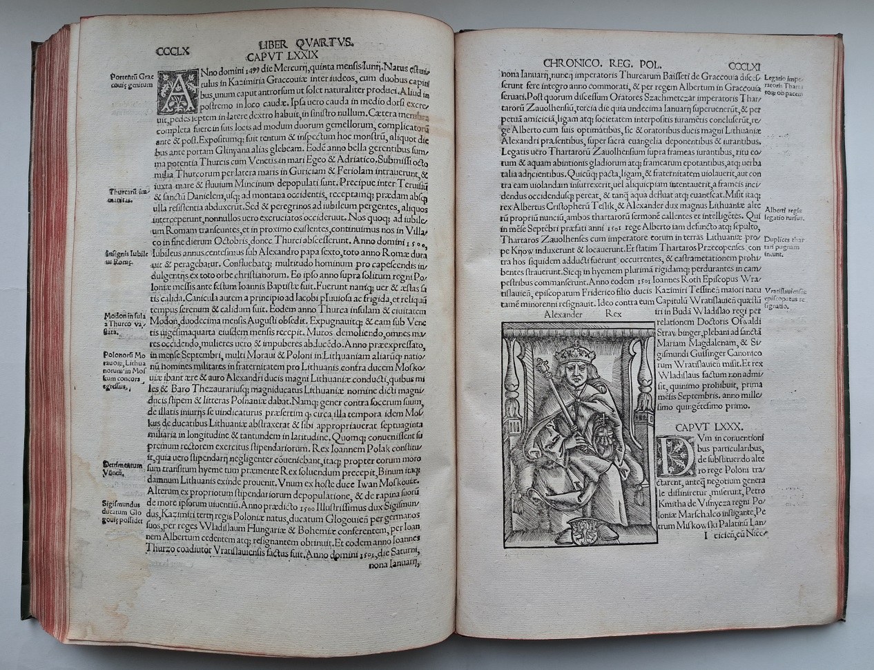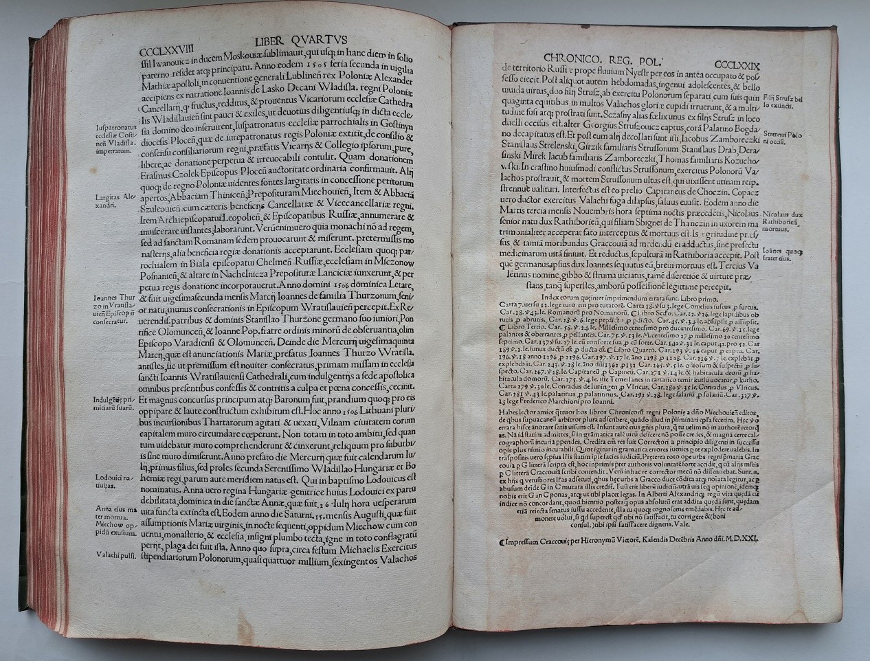"Wydał Jodocus Ludov. Decius z przedmową do Zygmunta I. — Na str. CCCLXXIX w końcu: In Alberti Alexandrique regum vita quaedam cum indice non concordant, quod biennio posteaque opus absolutum erat addita quędam sunt, quędam etiam reiecta senatus iussu accedente, illa tu quoque cognoscens emendabis. Hęc te admonere volui, si quid superest quod tibi non satisfacit, tu corrige et (boni consul) tibi ipse satisfacere digneris. Vale.