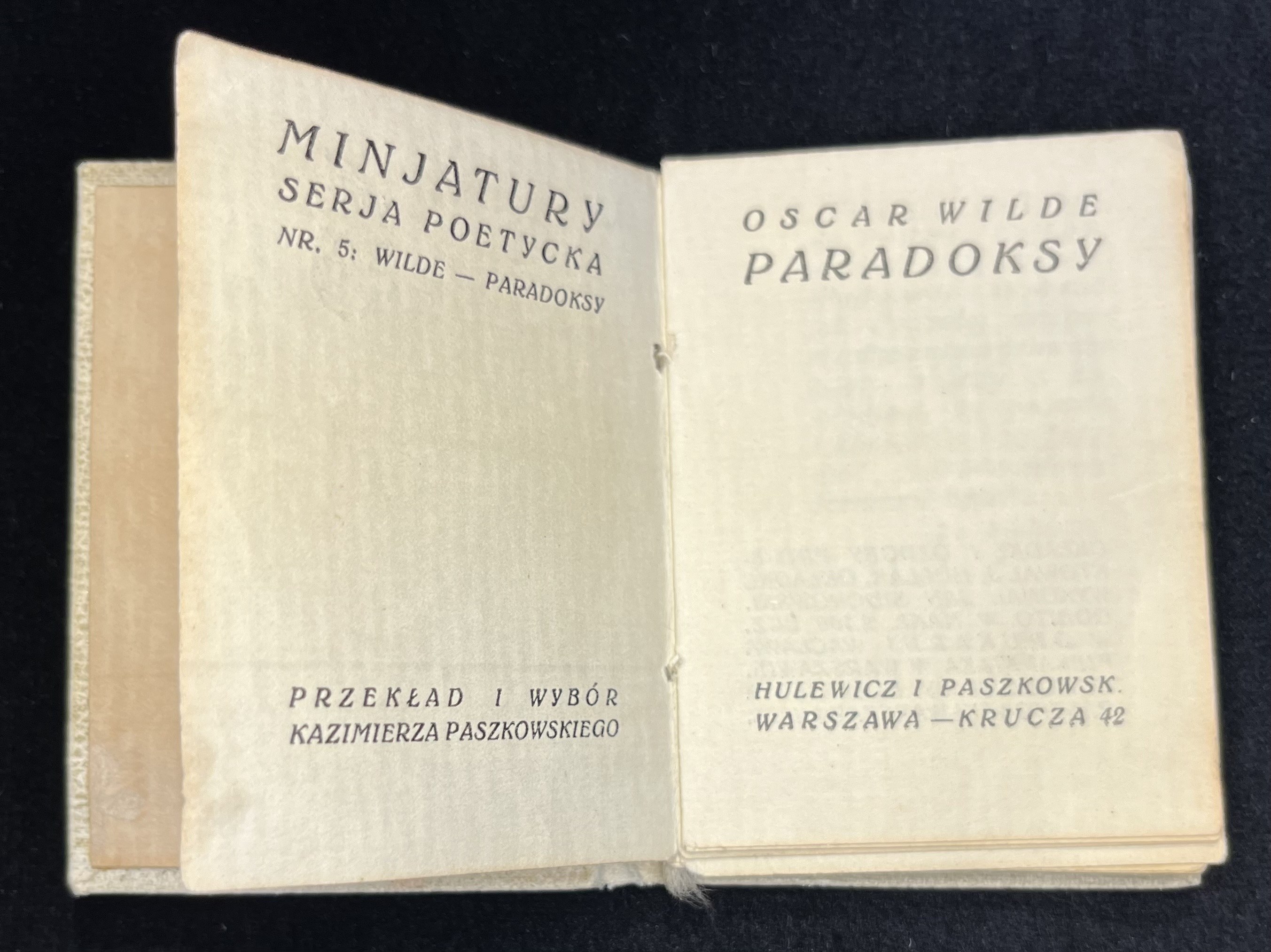 [Miniatury № 5] WILDE Oskar - Paradoksy. Warszawa 1923 U Hulewicza i Paszkowskiego Cykl: Serja poetycka