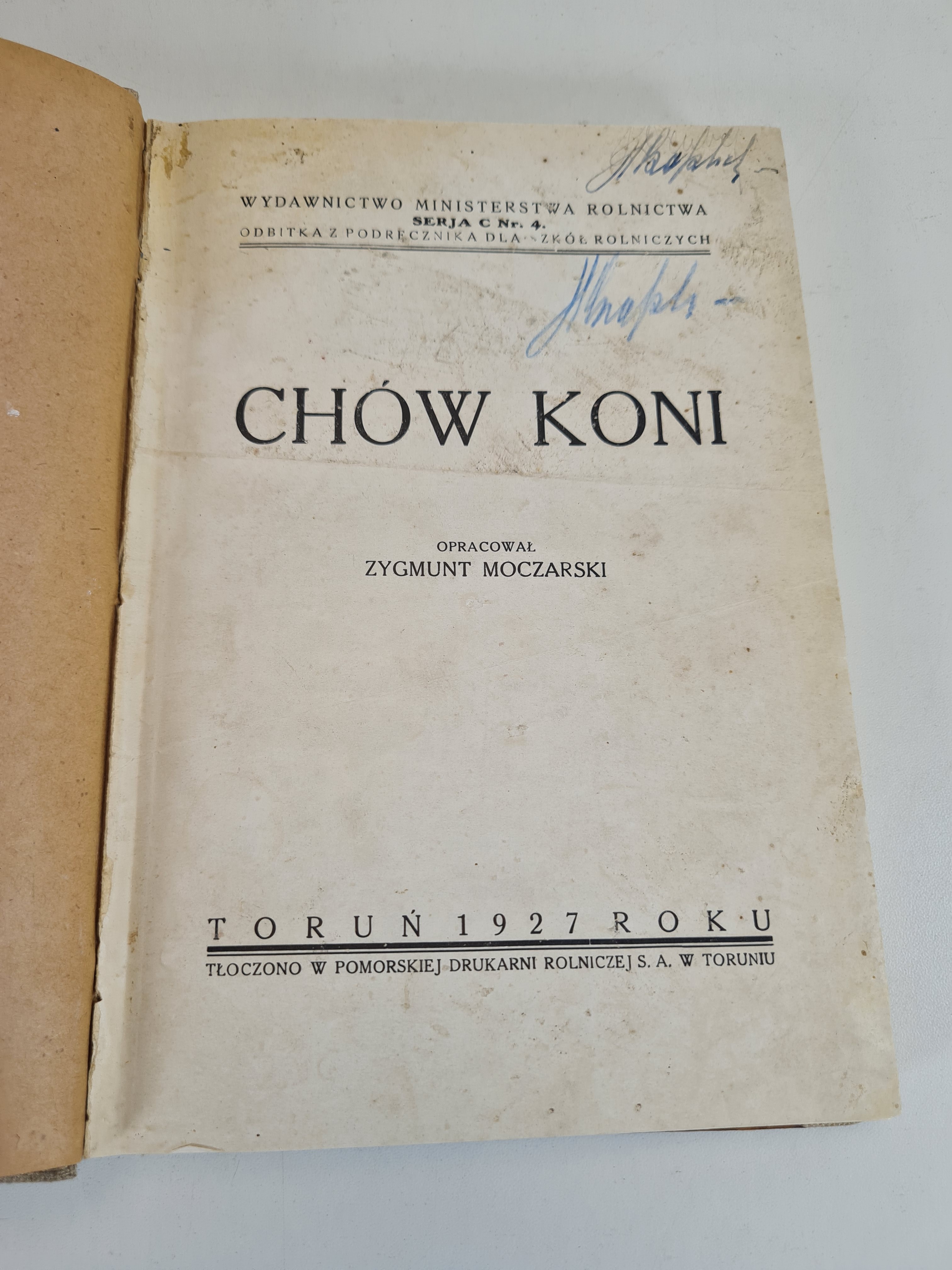 Wyd. Ministerstwa Rolnictwa, Toruń 1927. Wym.22,5x17cm; stron 219.Oprawa półpł. Strona tyt. zabrudzona, zaplamienia innych stron, załamania kilku kart. Podpisy własnościowe. Pierwsze wydanie podręcznika dla szkół rolniczych Z. Majewskiego.