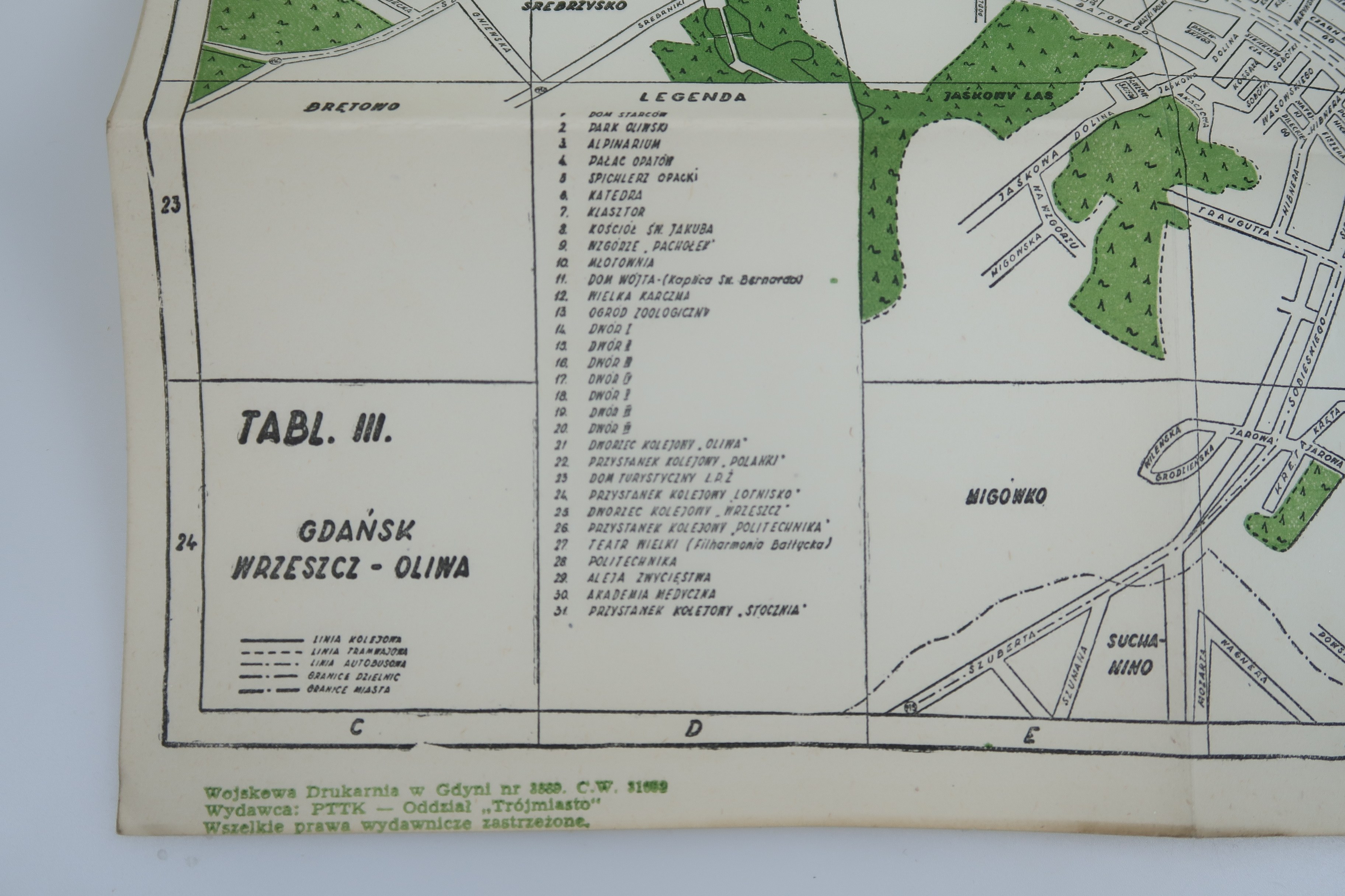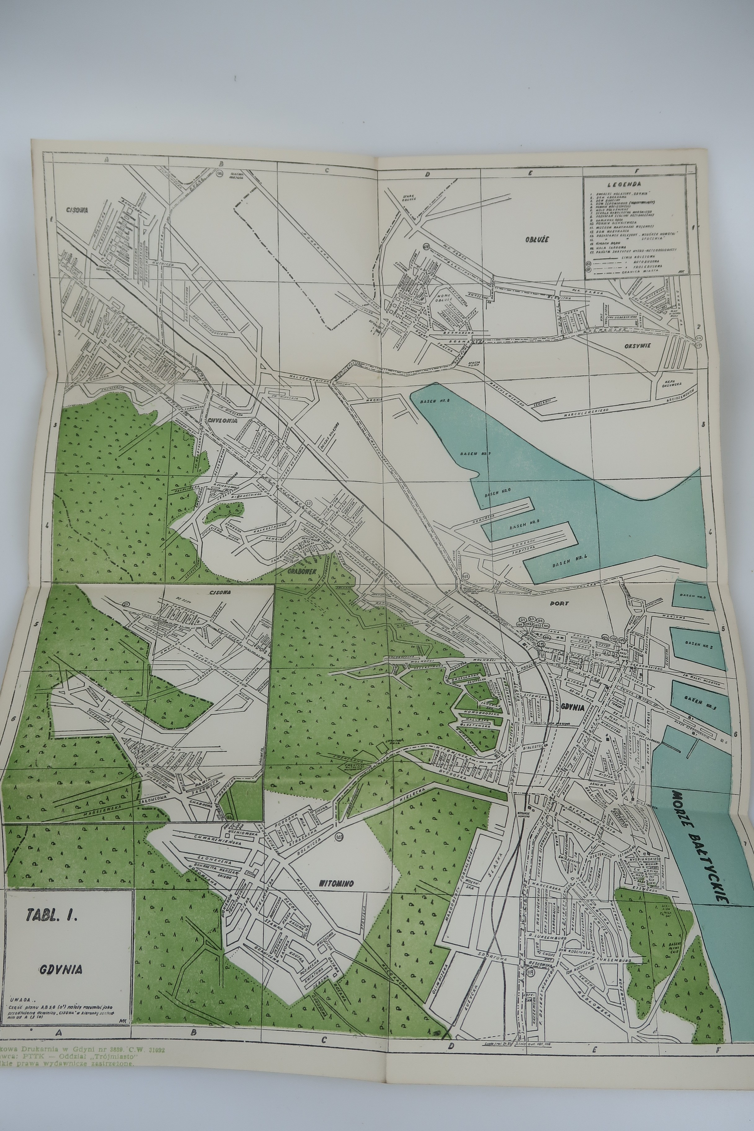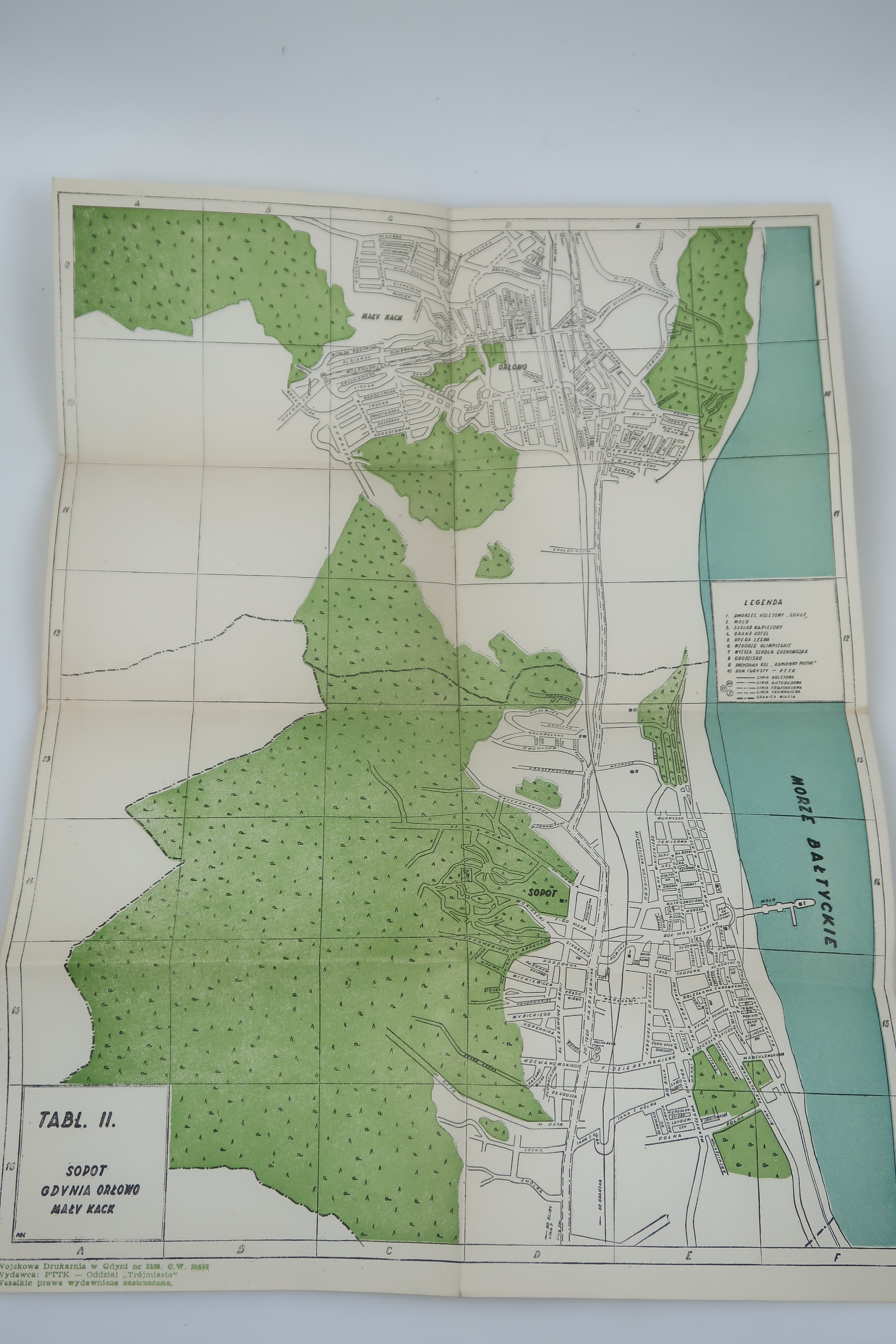 GDAŃSK GDYNIA SOPOT, Polskie Towarzystwo Turystyczno - Krajoznawcze. Oddział "TRÓJMIASTO", s. 88, 5 tablic (w opasce), wym. 10,5 x 14, tabl. 29,5 x 40 (10 x 15 po złożeniu), oprawa broszurowa, przybrudzenia okładki. Stan dobry.