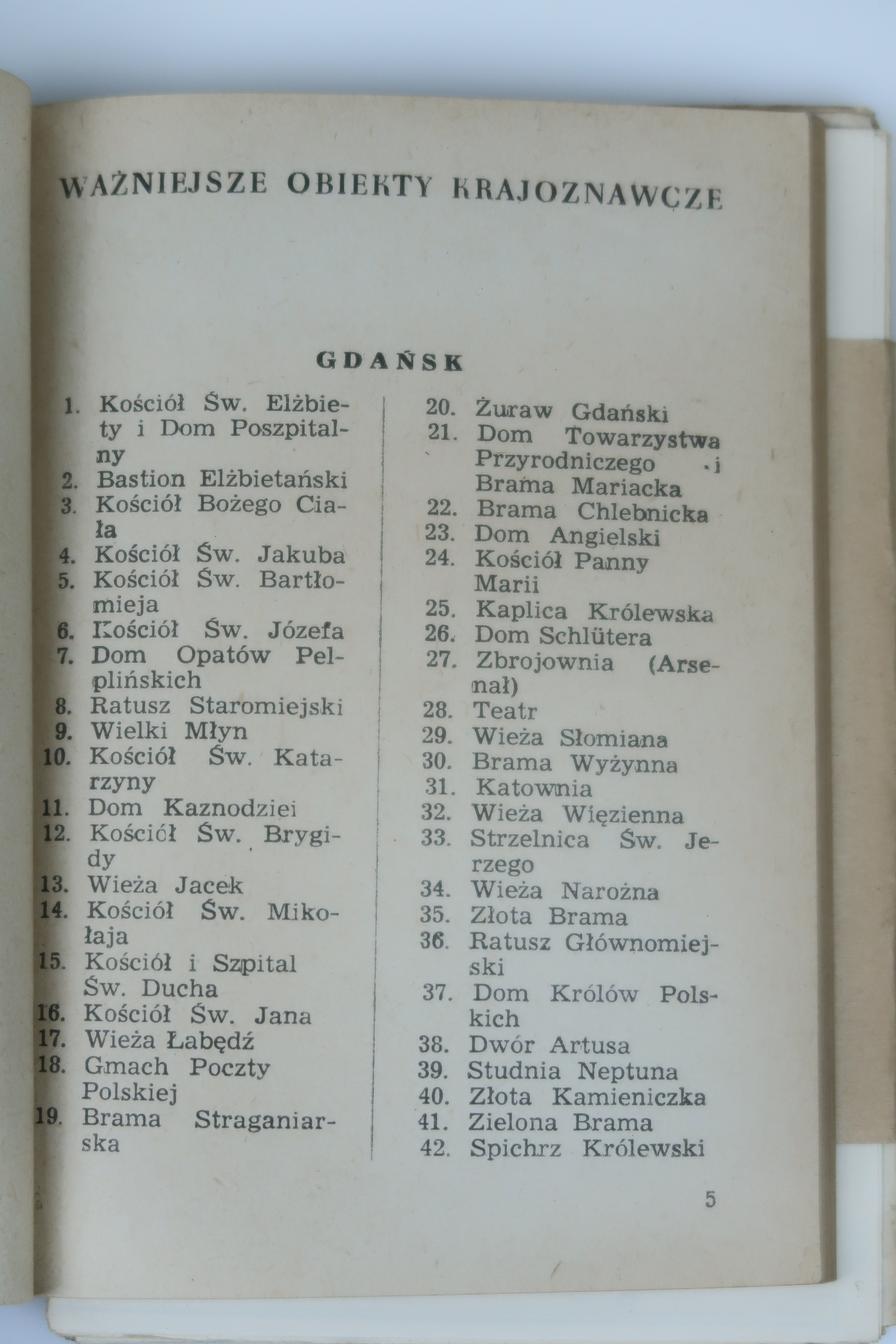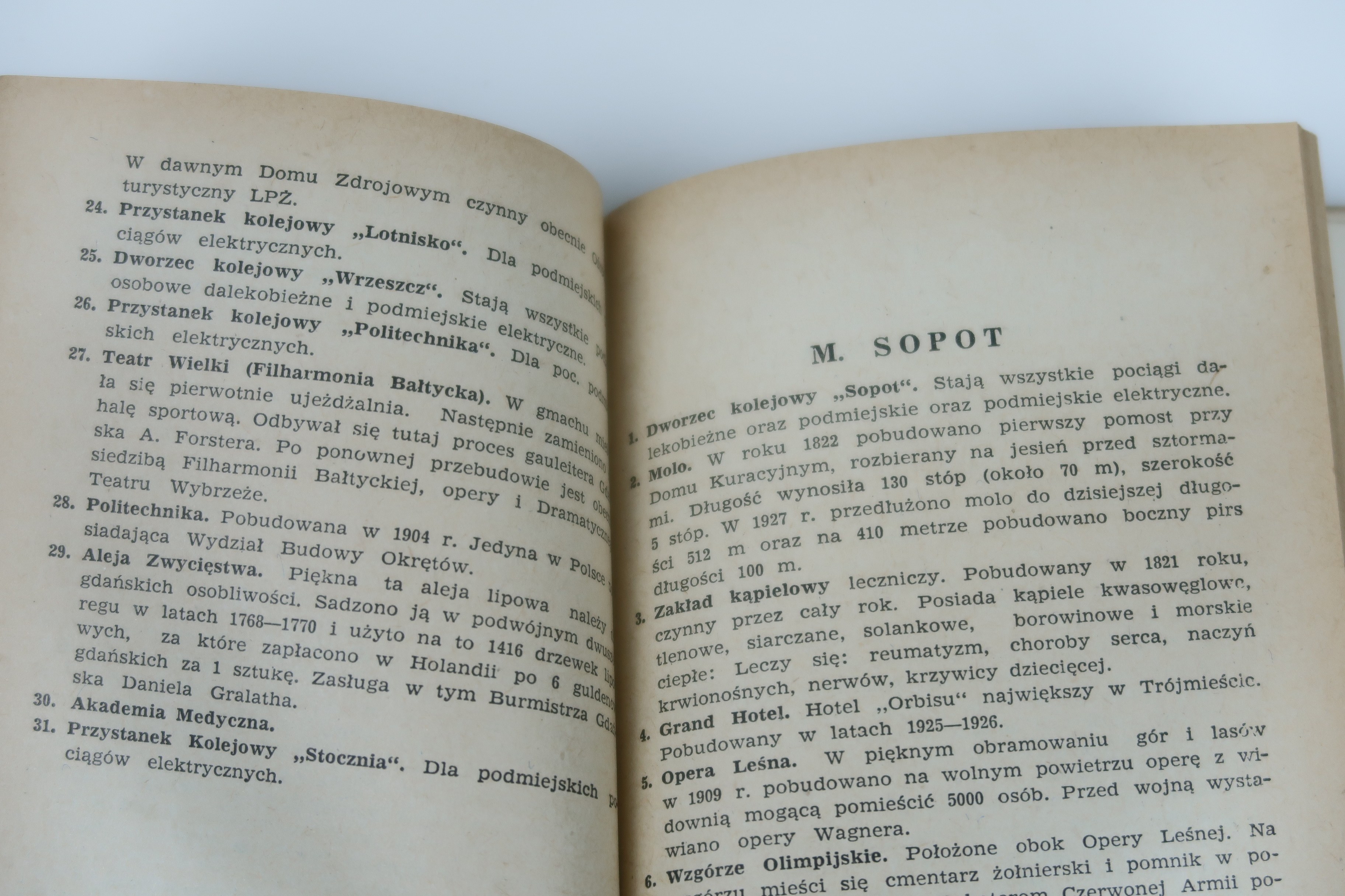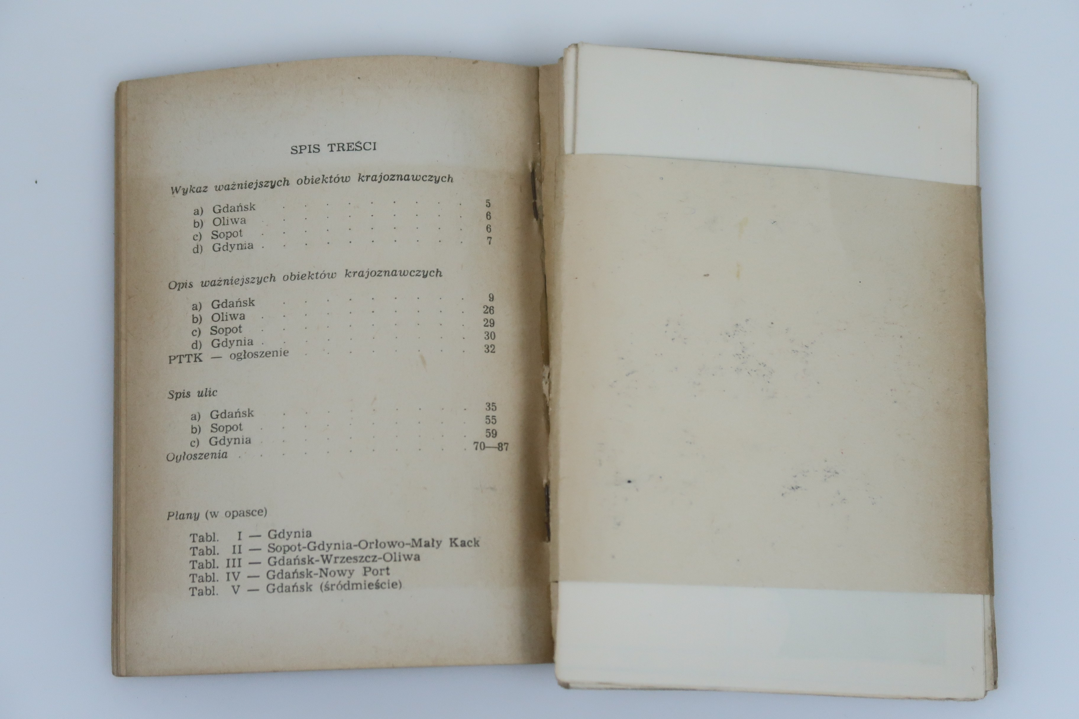 Zawiera: Wykaz i opis najważniejszych obiektów krajoznawczych: GDAŃSK, OLIWA, SOPOT, GDYNIA, oraz plany: GDAŃSK, NOWY PORT, WRZESZCZ-OLIWA, SOPOT ORŁOWO MAŁY KACK, GDYNIA.