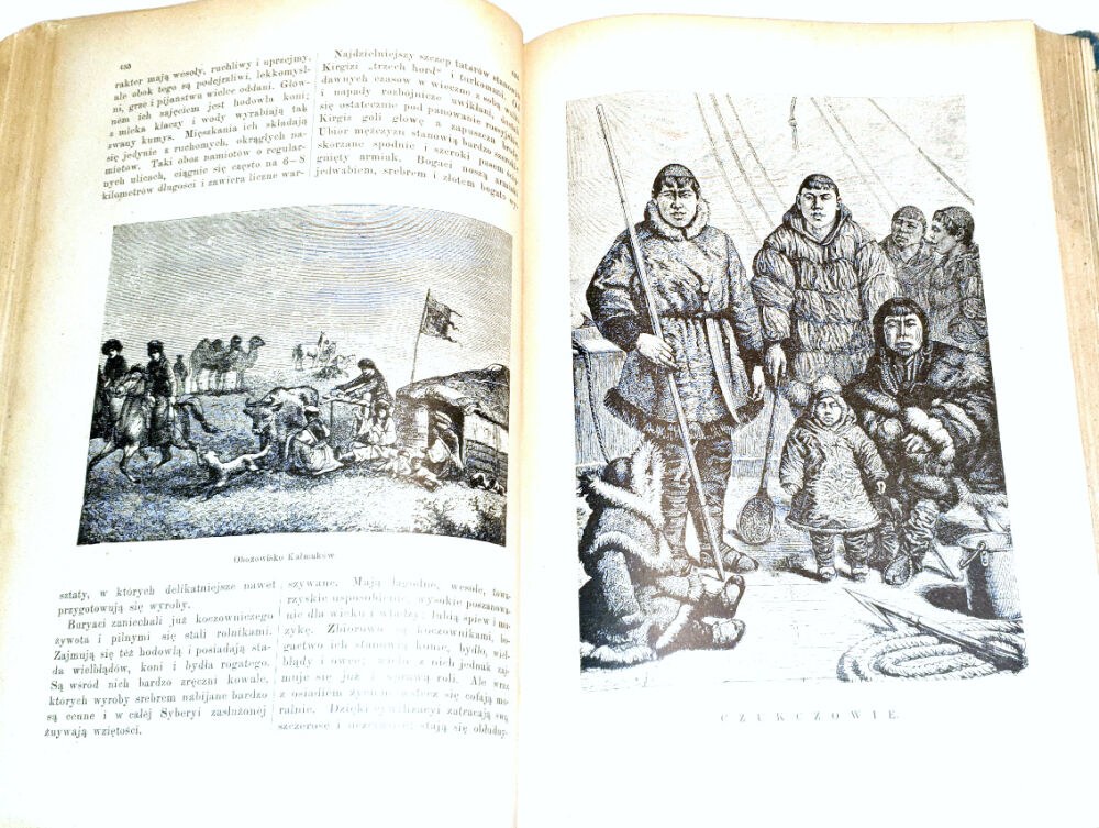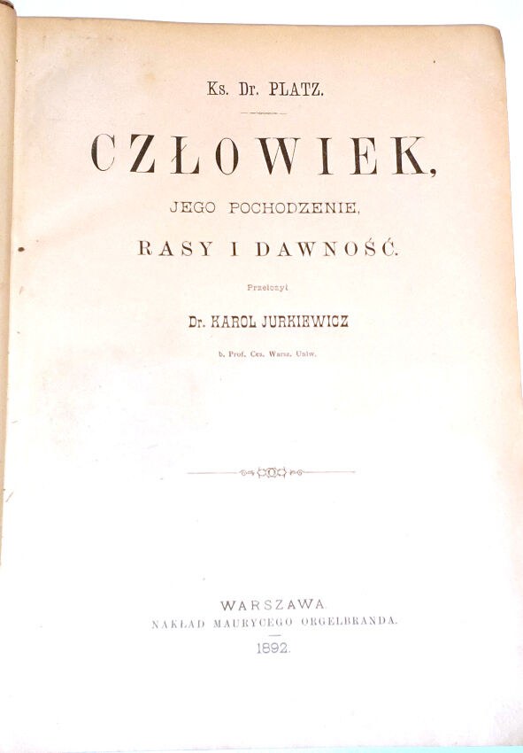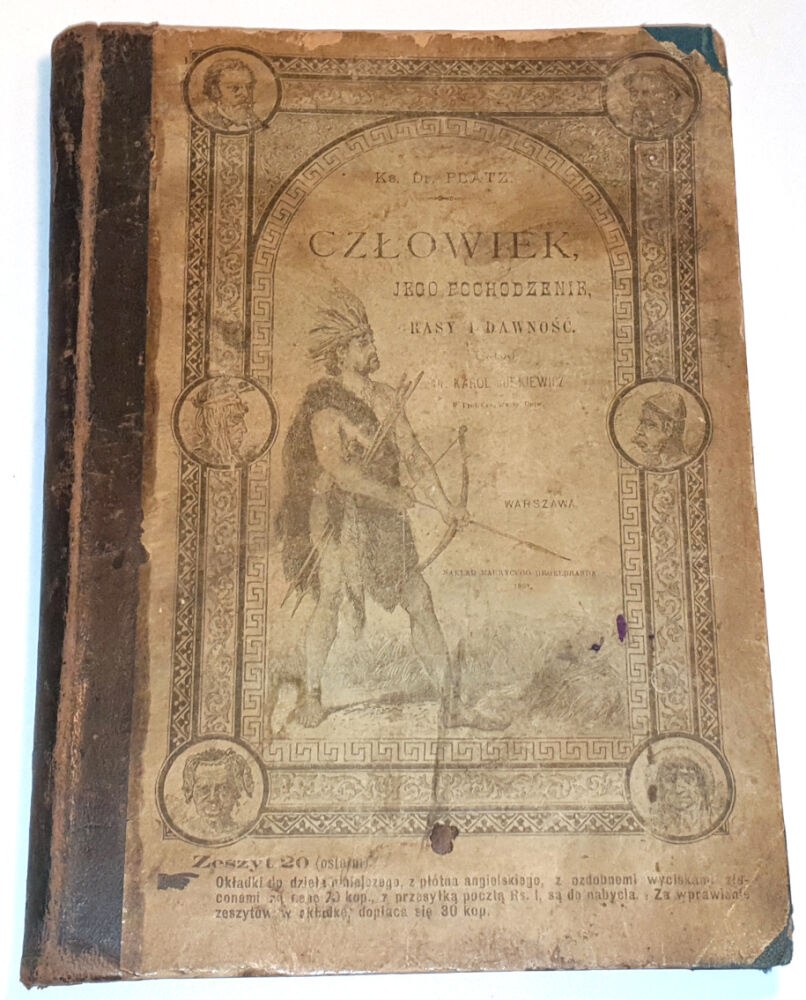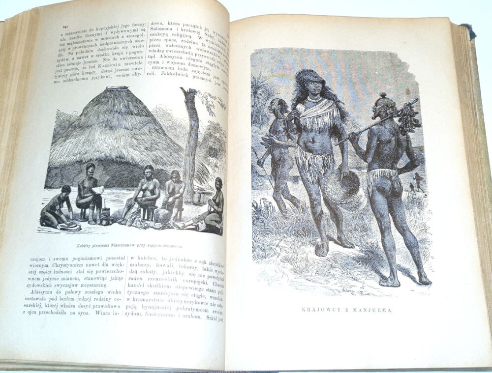 Bogato ilustrowana drzeworytami praca podejmująca nast. zagadnienia: Ludy pierwotne - antropologia społeczna, Pochodzenie człowieka, Rasy ludzkie.