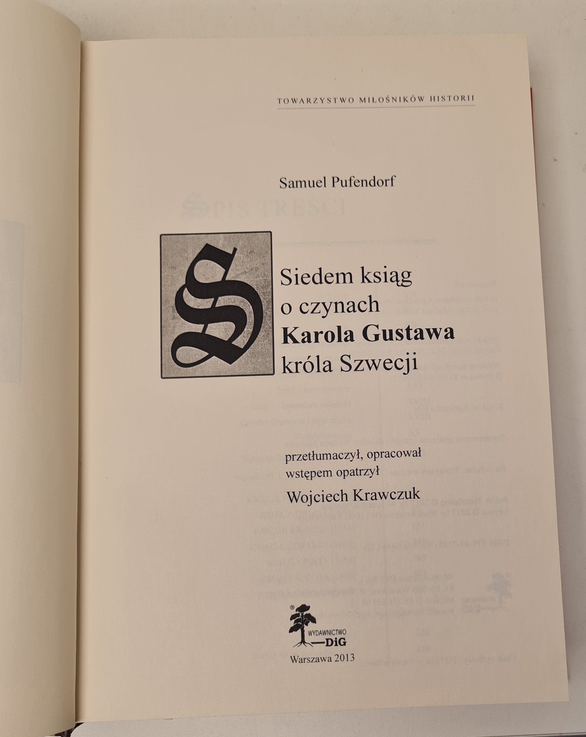 Pufendorf Samuel - Siedem ksiąg o czynach Karola Gustawa króla Szwecji. Przetłumaczył, opracował, wstępem opatrzył Wojciech Krawczuk. Warszawa 2013. Wydawnictwo DiG. 4, s. 652 + płyta CD. oprawa oryginalna kartonowa.