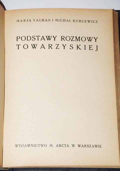 VAUBAN MARJA; KURCEWICZ MICHAŁ – PODSTAWY ROZMOWY TOWARZYSKIEJ. WYDAWNICTWO M.ARCTA, WARSZAWA 1935r., str. 146, [1].