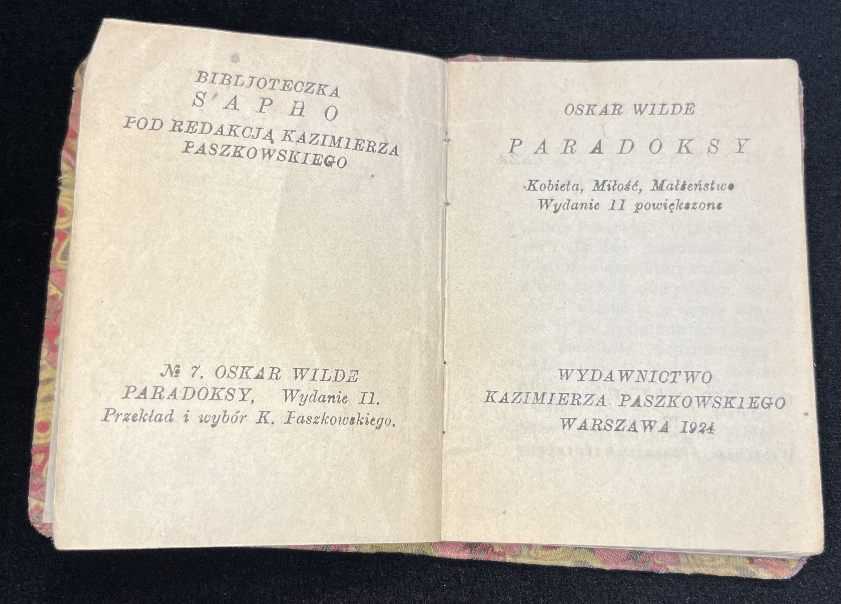 [Bibljoteczka Sapho № 7] WILDE Oskar - PARADOKSY. Warszawa 1924. Wydawnictwo Kazimierza Paszkowskiego Wyd. II