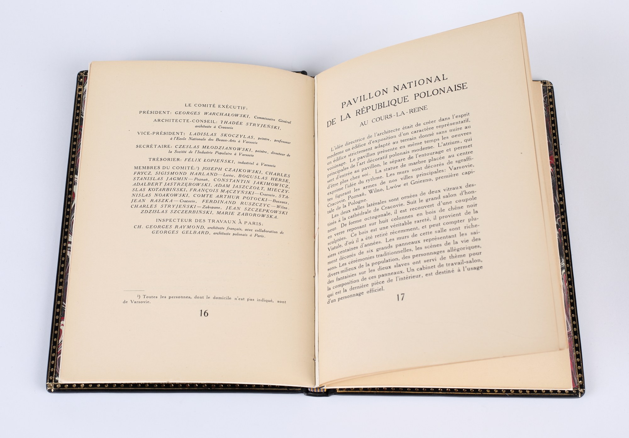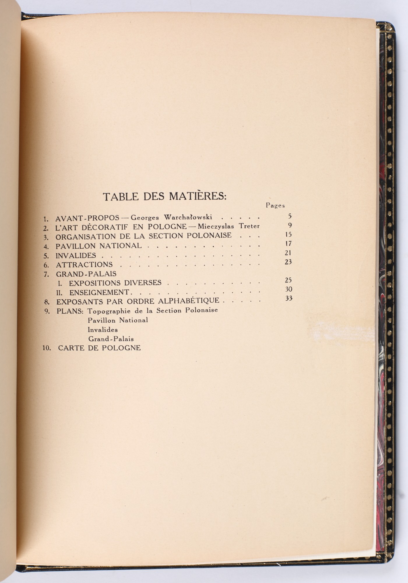 S. 38, 1 k. tabl. rozkł. (mapa Polski). Wys. 23,6 cm. Luksusowa oprawa współczesna autorstwa Marka Bauera z Warszawy: pełna skóra z wklejoną na licu oryg. okładką brosz. Grzbiet podzielony na 5 pól, z czego w części pól wytłaczana tytulatura oraz inicjały właściciela. Oprawa sygnowana suchym tłokiem na tylnej okładce. Wyklejki z ozdobnego papieru marmurkowego, przyokładkowe wyklejki dodatkowo ze złoconymi obcięciami na krawędziach skóry. Ekslibris.