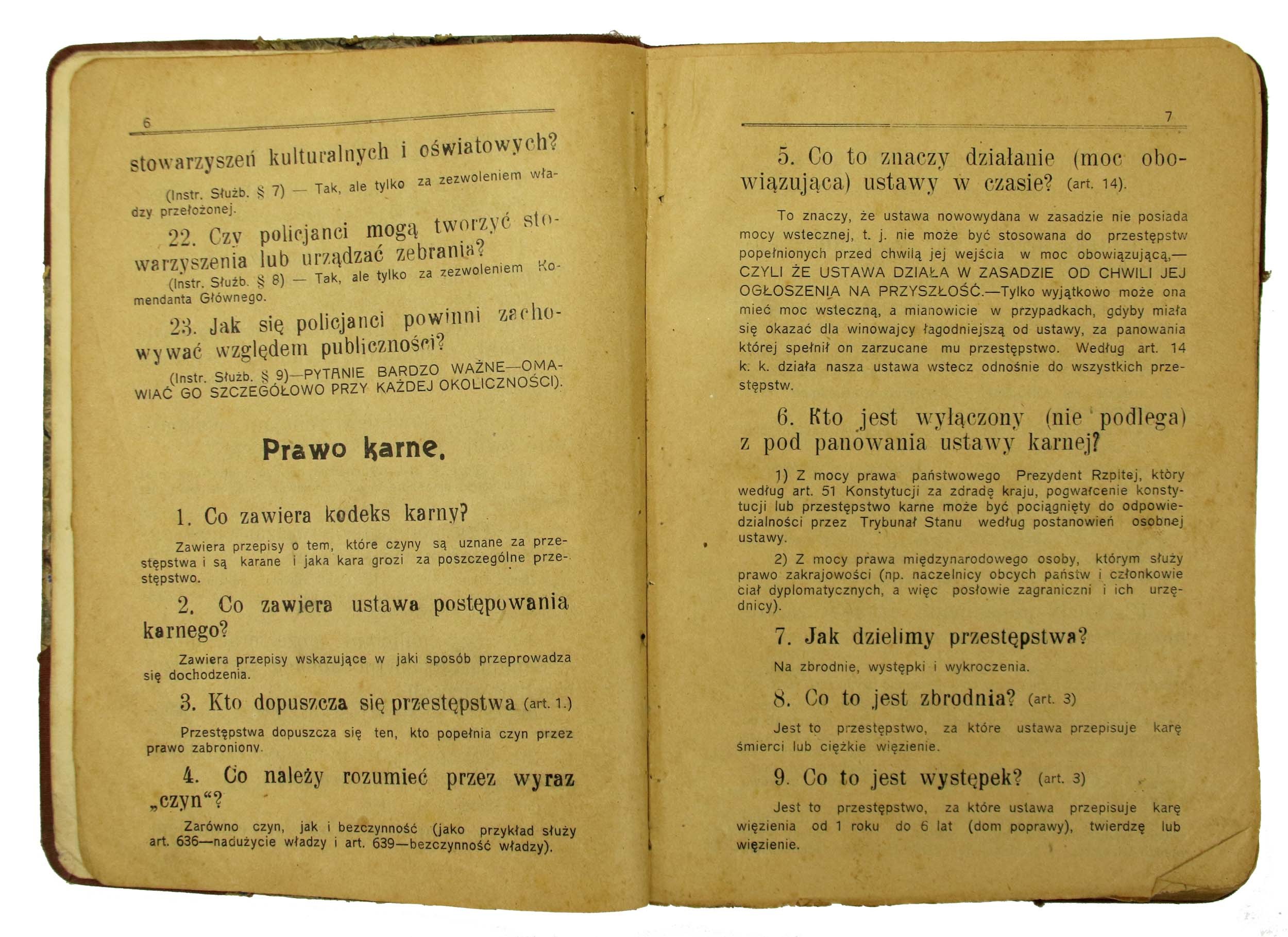 Nadkomisarz P.P.J. Wierzbówka - Pytania i Odpowiedzi według instrukcji 12-miesięcznego szkolenia posterunkowych policji na posterunkach i w komisariatach. Wyd. Komenda Główna P.P. Łuck 1924.
