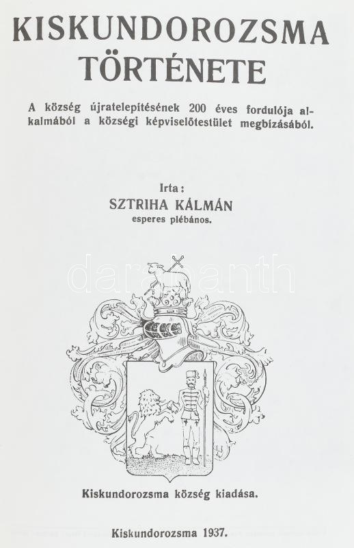 Sztriha Kálmán: Kiskundorozsma története. Kiskundorozsma, 1990, Kiskundorozsmai Takarékszövetkezet. Az 1937-es hasonmás kiadása. Fekete-fehér fotókkal. Kiadói félvászon-kötés.