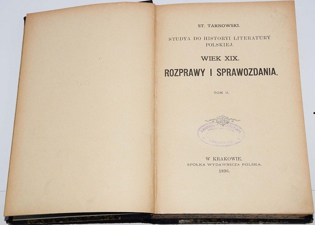 TARNOWSKI ST. - STUDIA DO HISTORYI LITERATURY POLSKIEJ. WIEK XIX. ROZPRAWY I SPRAWOZDANIA, 1-2 komplet. SPÓŁKA WYDAWNICZA POLSKA, KRAKÓW 1895-1896r., str. [4], 313, [2]; [4], 319, [2]; 21,5cm.
