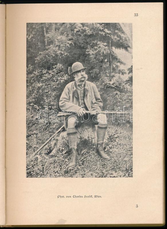 Unser Kaiser als Weidmann. Eine Festgabe zum 80. Geburtstage Seiner Maiestät. Wien, Gerlach & Wiedling. Kiadói egészvászon kötés, számos erdélyi és magyar vadászfotóval, néhány lapon enyhe foltok, gerinc kissé szakadt, egyébként jó állapotban.