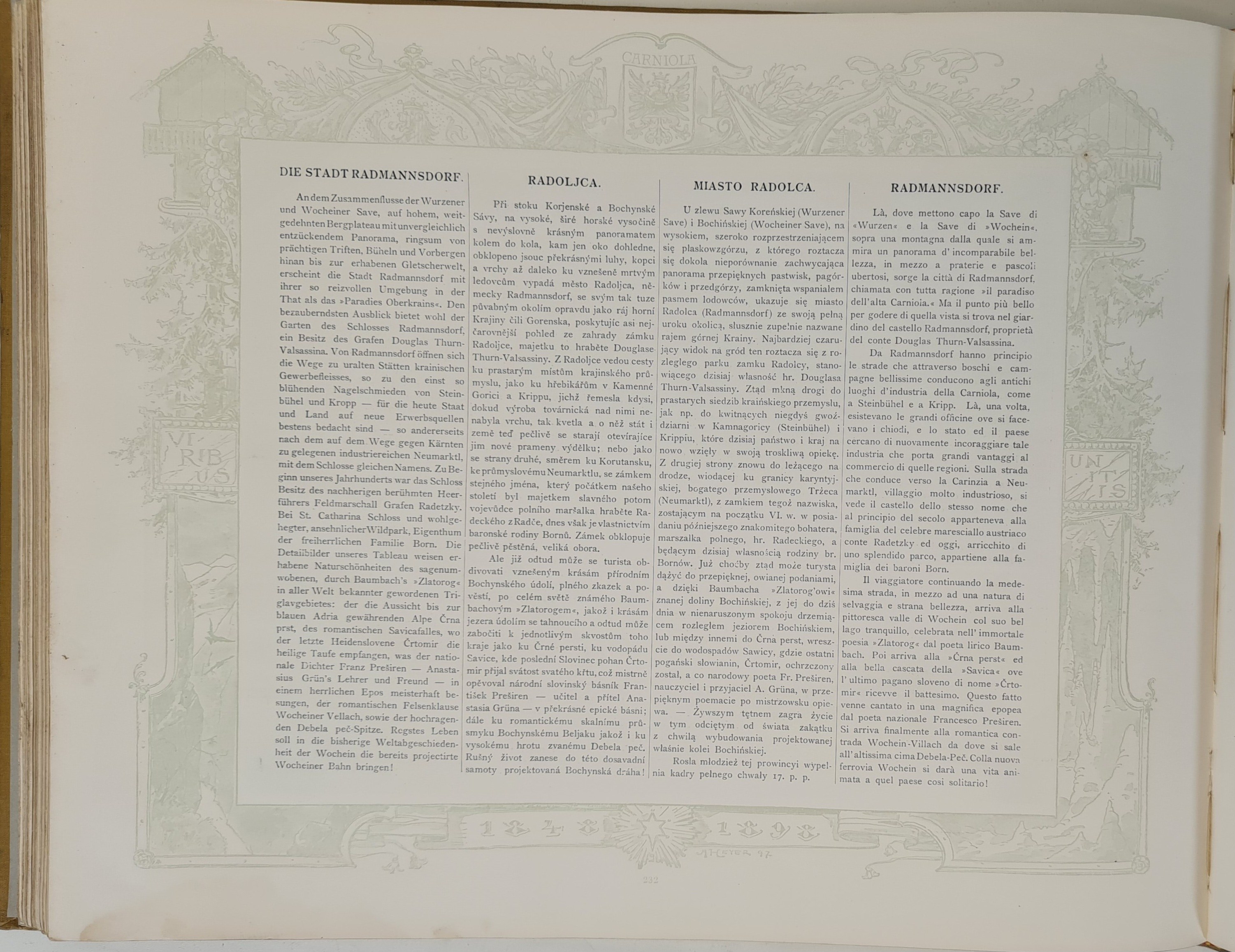 Winiety - obramowania stron: Arthur Heyer. Wyd. Georg Szelinski, K. K. Universitats - Bchhandlung, Wiedeń 1898. Jubileuszowe wydanie albumowe, bogato ilustrowane. Wym. 29x37cm, stron 292 + 286. Oprawa oryginalna twarda ozdobna (przybrudzenia, zadrapania, otarcia), grzbiet naprawiany, z naklejonym oryginalnym, nowe zszycie kart - blok zwarty, współczesna wyklejka, ślady użytkowania (niewielkie przybrudzenia kart, pojedyncze naddarcia).