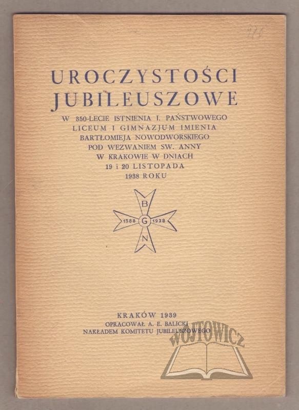 pod wezwaniem św. Anny w Krakowie w dniach 19 i 20 listopada 1938 roku. Oprac. A. E. Balicki. Kraków 1939. Nakł. Komitetu Jubileuszowego. 8, s. 67, ilustr. w tekście, okł. brosz. wydaw.