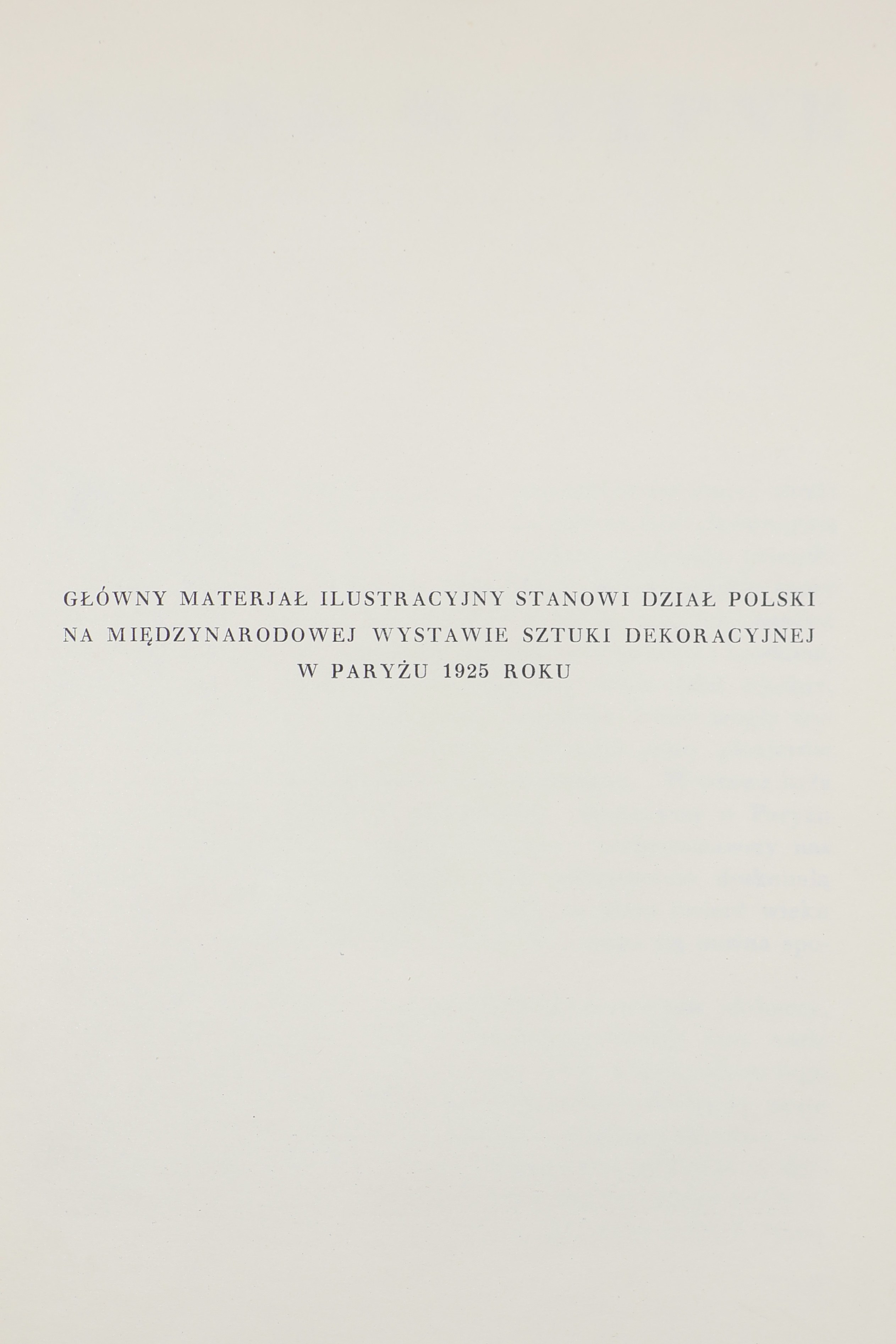 Klasyczne opracowanie Jerzego Warchałowskiego, jednego z czołowych teoretyków sztuki, poświęcone polskiej sztuce dekoracyjnej. Publikacja bogato ilustrowana, dokumentująca rozwój rodzimego rzemiosła i sztuki użytkowej w pierwszych dekadach XX wieku.