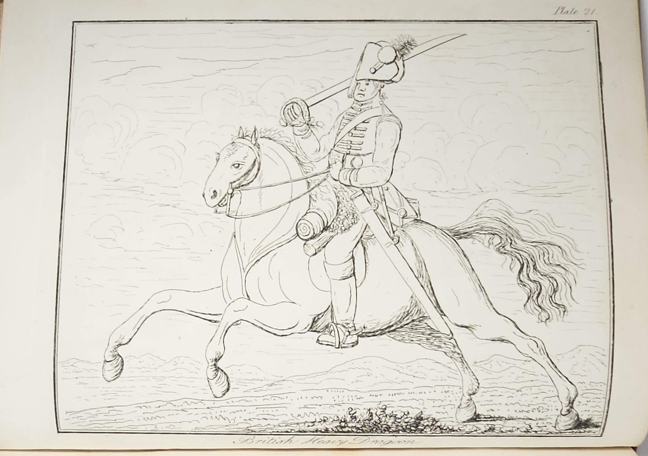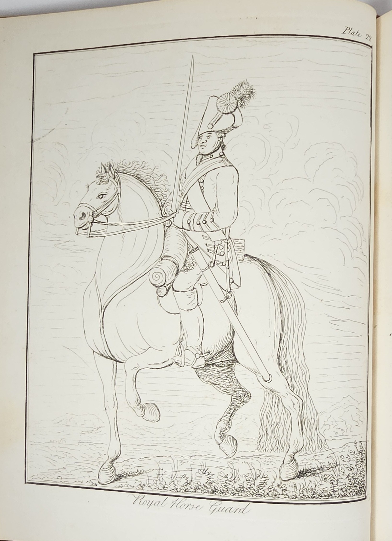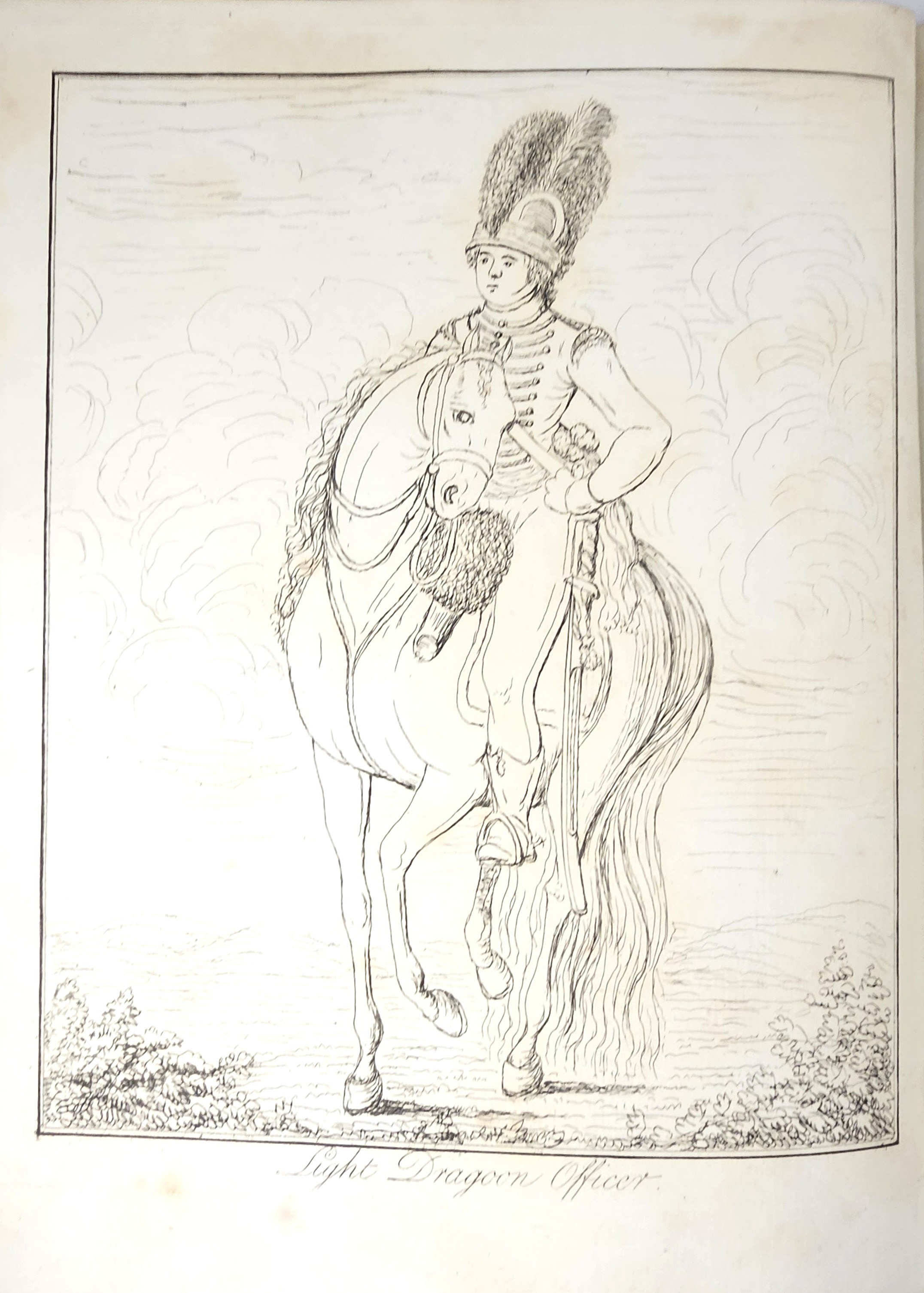 27.5 cm, s. XXII, 125, [1], 30 tablic, opr. sk. z epoki:grzbiet złocony z zielonym szyldzikiem; tekst na czerpanym niebieskim papierze, tablice na papierze welinowym. Grzbiet oprawy naprawiany, tablice ze śladami zabrązowień, poza tym stan dobry, ładny egzemplarz. Autor (1720-1786) historyk wojskowości, służył w wojsku Fryderyka II Wielkiego króla Prus, brał udział w wojnie siedmioletniej. W 1758 przeniósł się do Polski, gdzie osiągnął stopień generała-majora [Wikipedia].