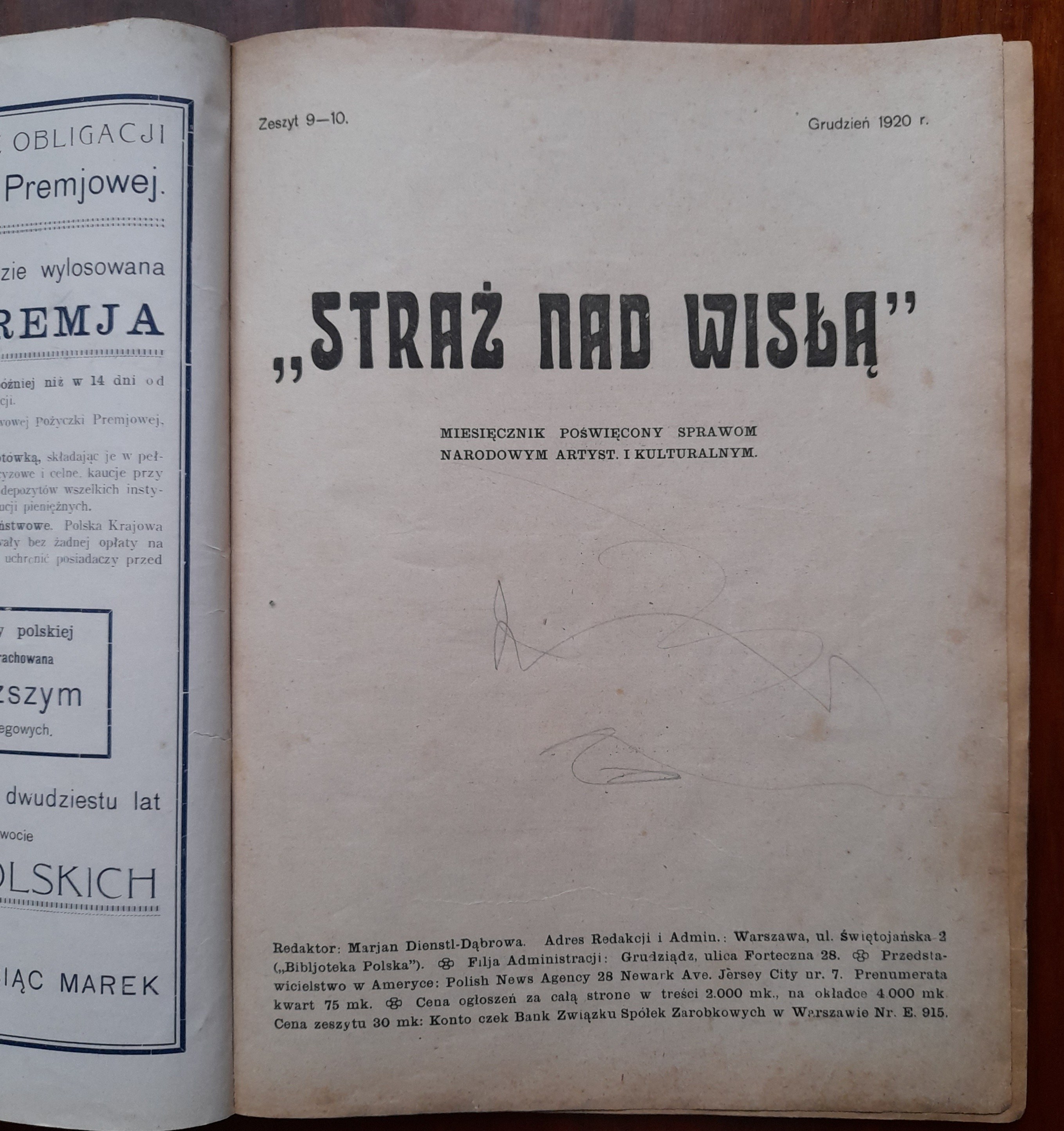Straż nad Wisłą.Zeszyt gwiazdkowy 9-10 1920 r. Miesięcznik poświęcony sprawom narodowym artystycznym i kulturalnym.Stron 48