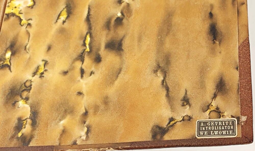 OPRAWA SYGNOWANA NALEPKĄ "A.GETRITZ, INTROLIGATOR WE LWOWIE".