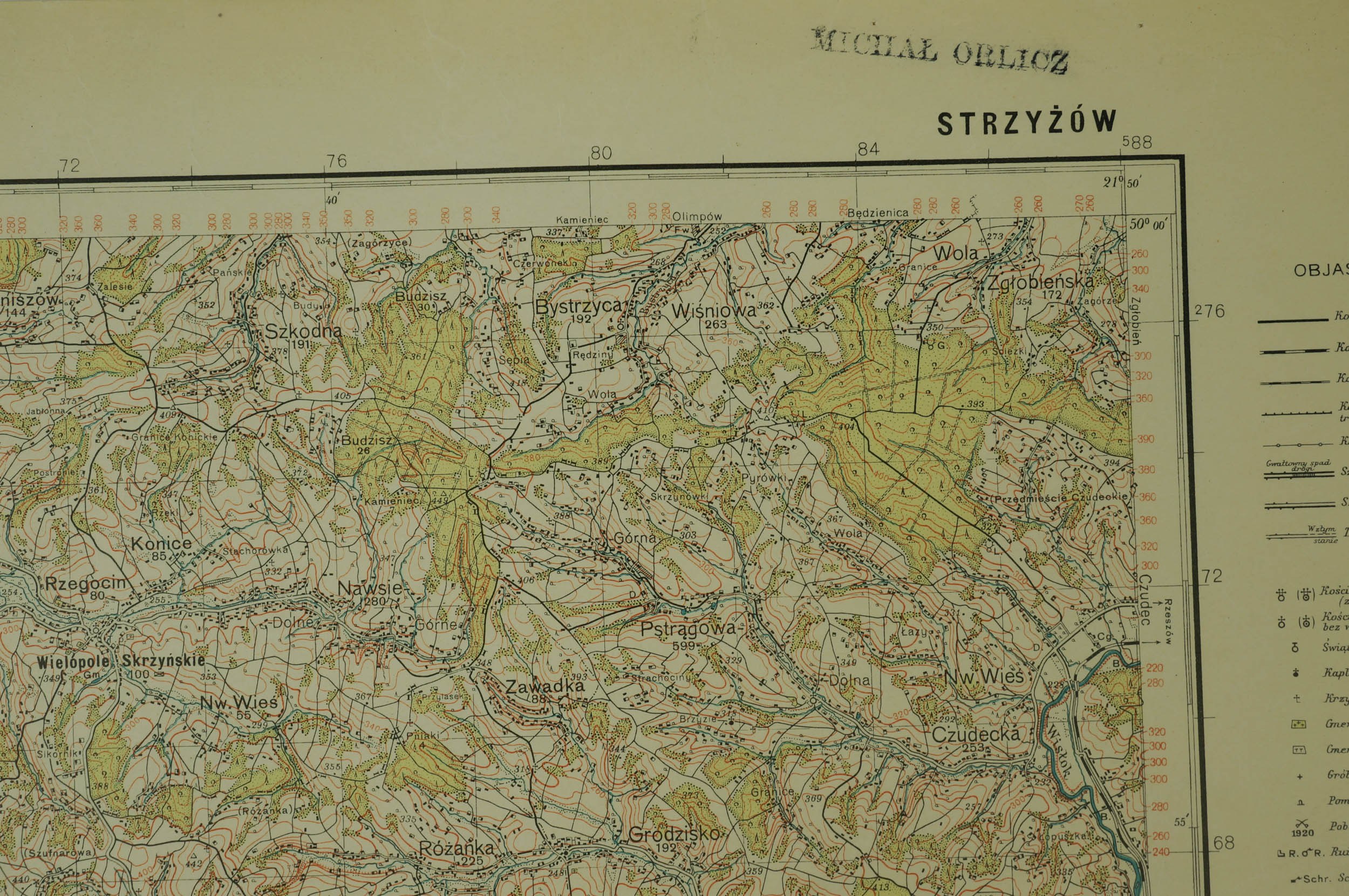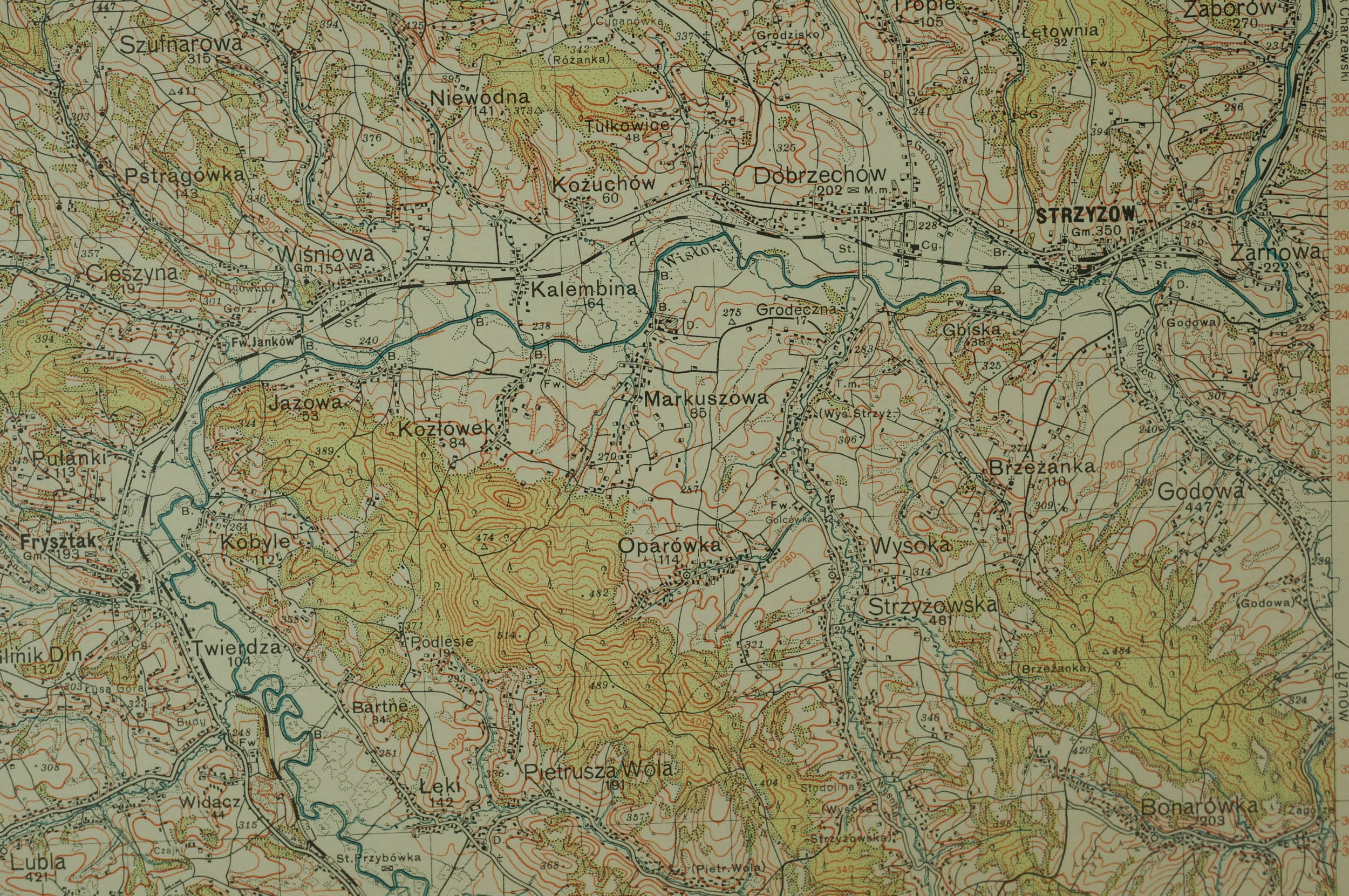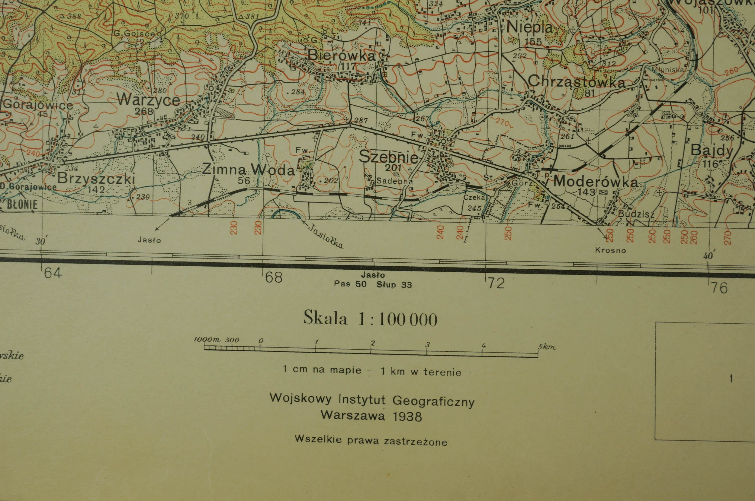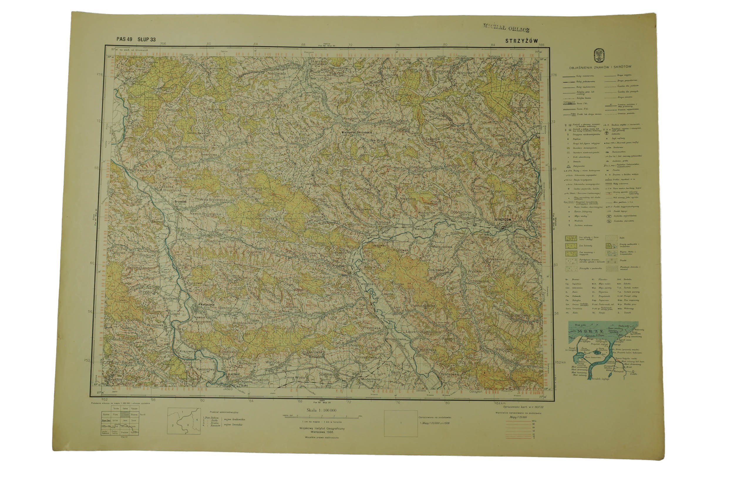 Strzyżów PAS 49, SŁUP 33 - mapa WIG [Wojskowy Instytut Geograficzny] II RP, Warszawa 1938r., skala 1: 100.000, kolor, f. 49x36,5cm