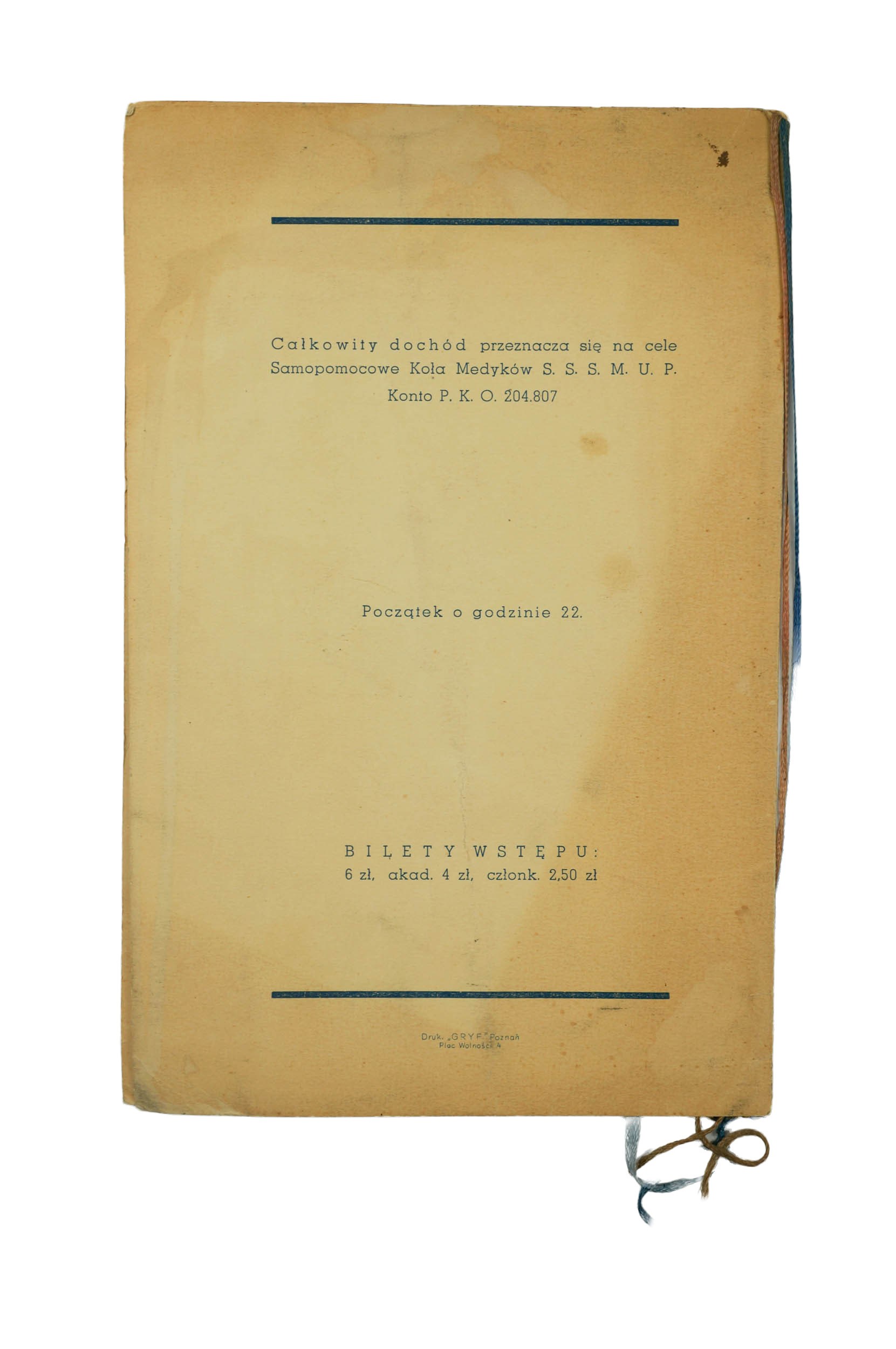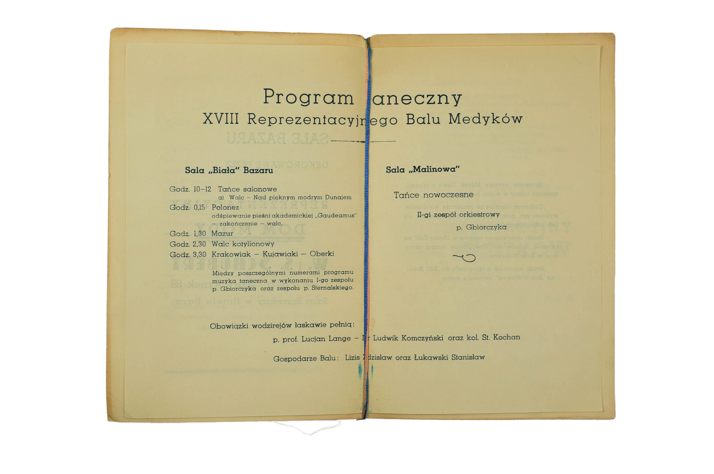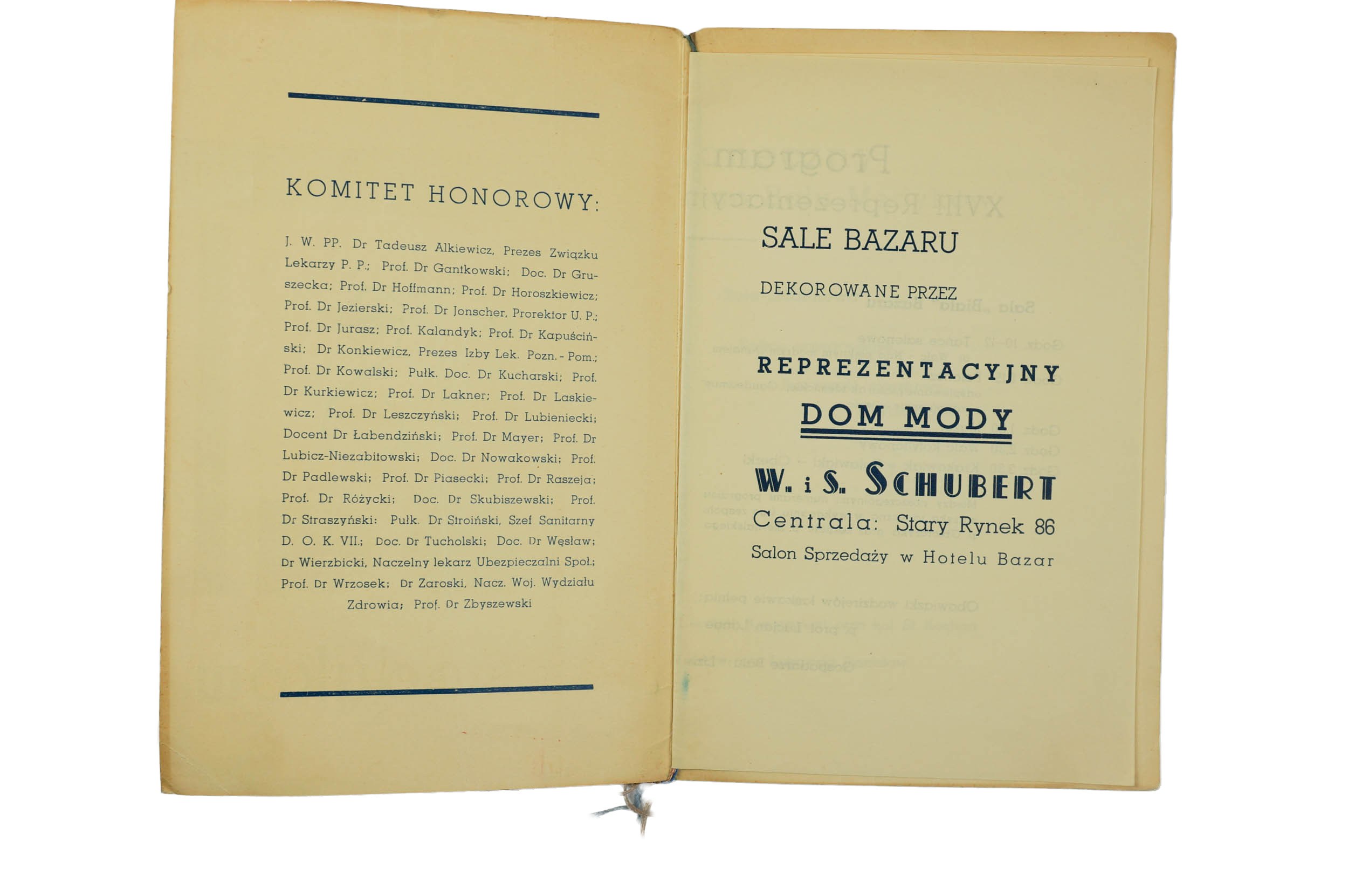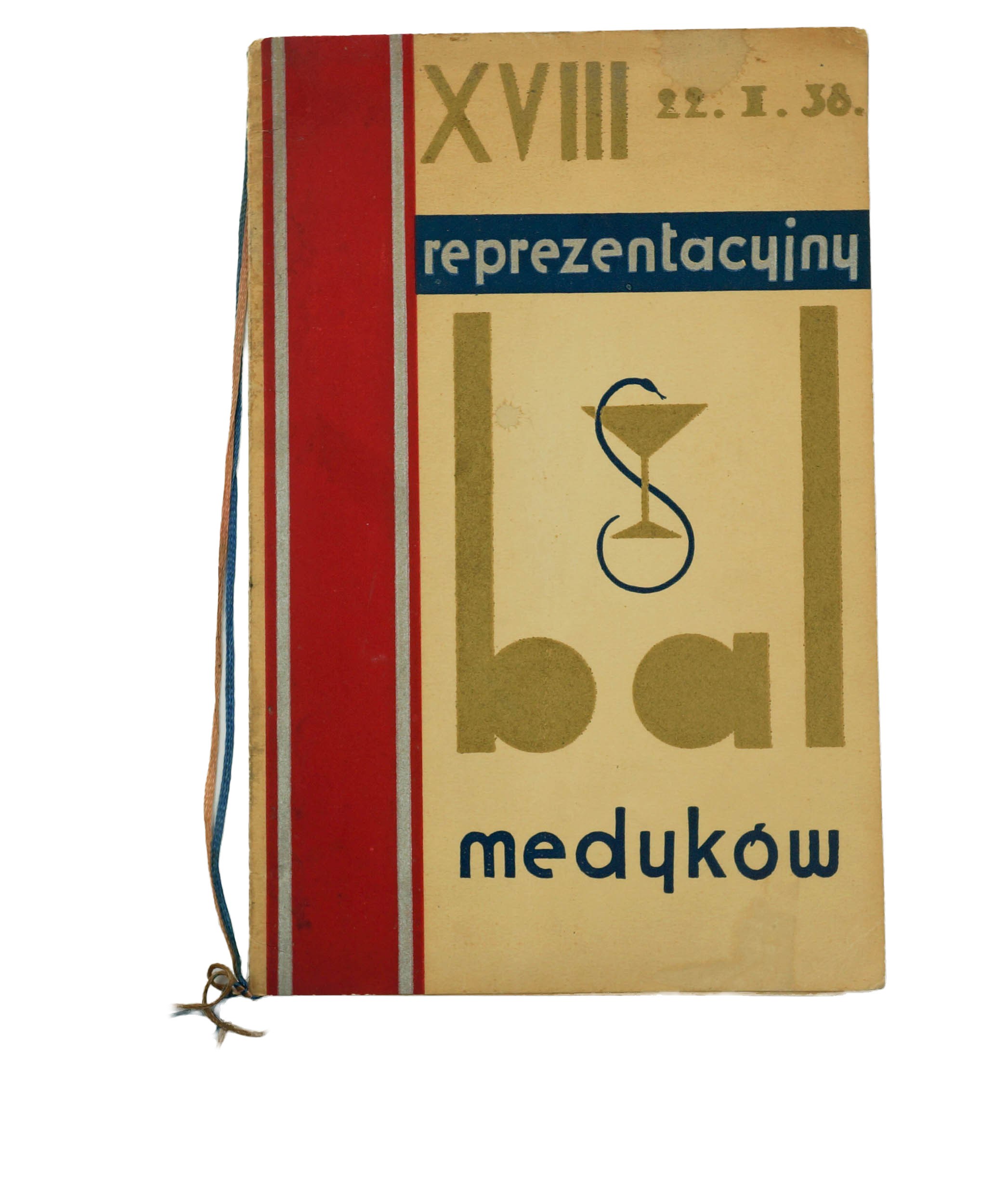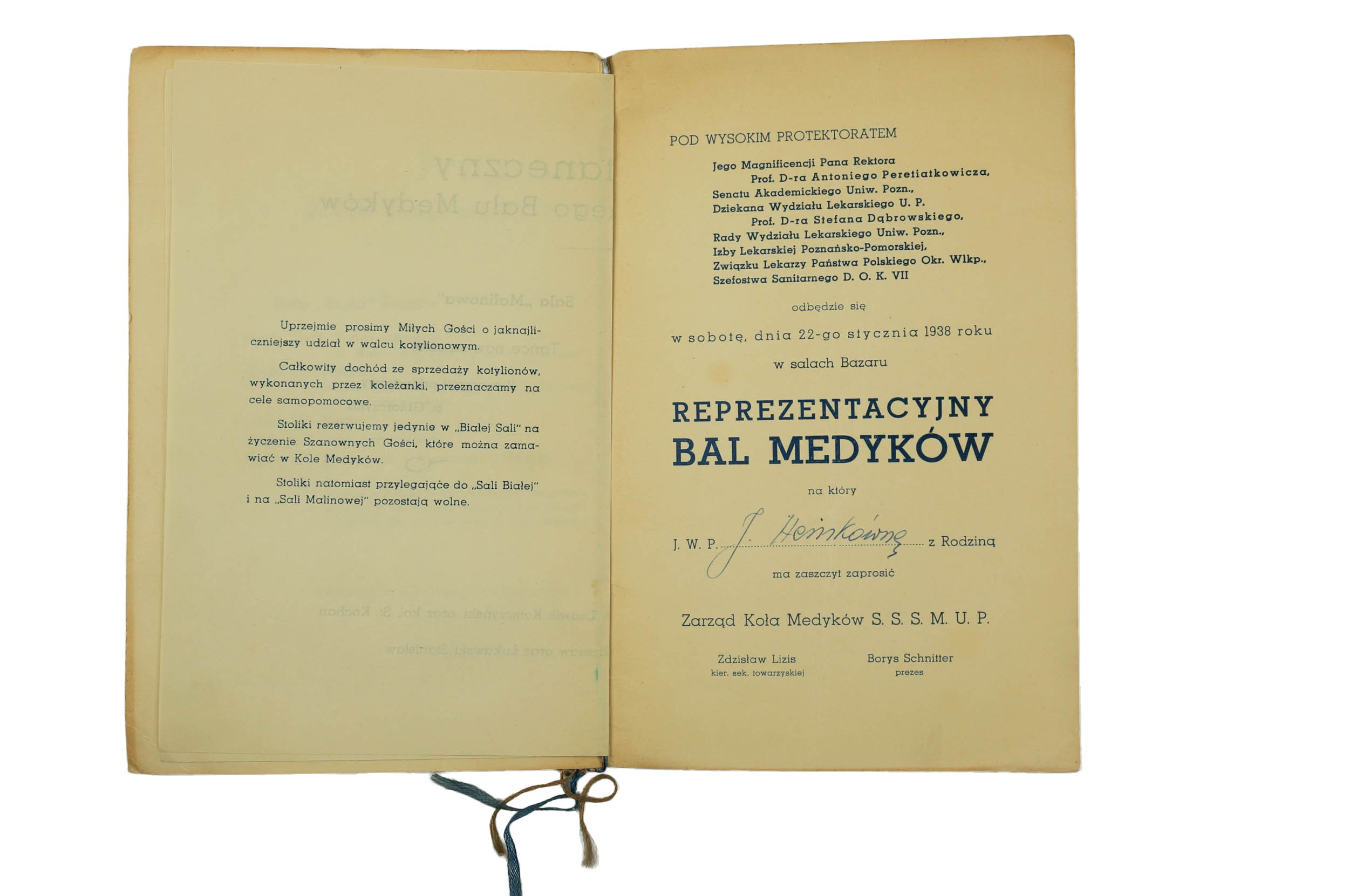 XVIII Reprezentacyjny Bal Medyków 22.I.1938r. w salach poznańskiego Bazaru, piękne w formie ZAPROSZENIE dla J. Heinkówny, f. 15 x 22,7cm, [AW3]