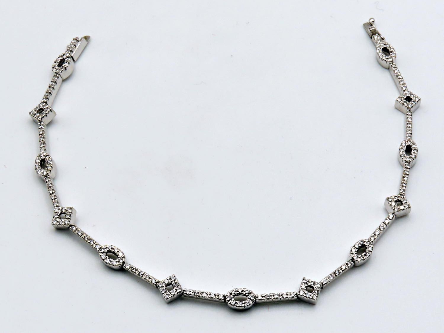 Bracciale in oro bianco e brillanti ct.1,70 circa con elementi ovali e quadrati. gr.9,60